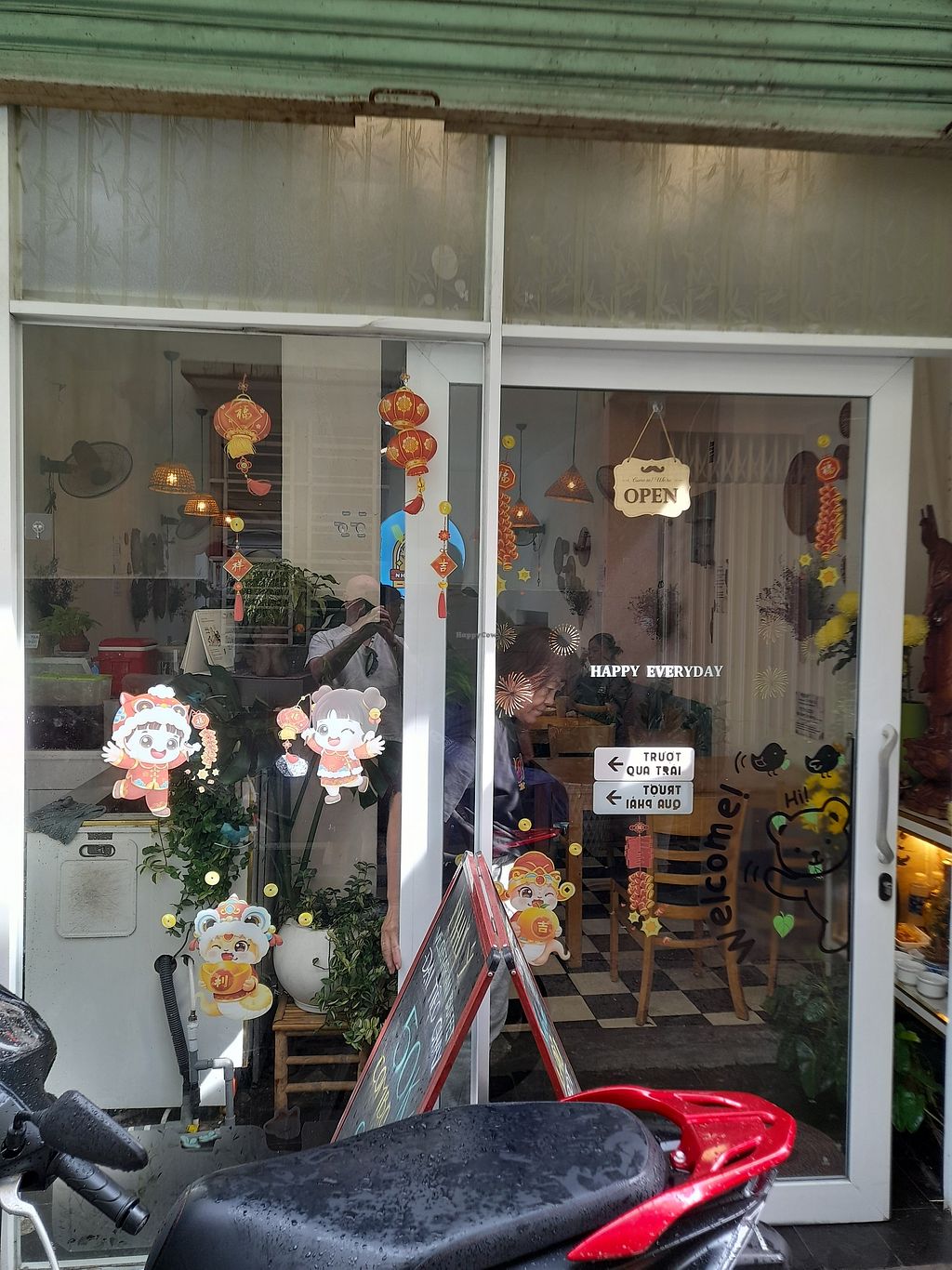 Excellent vegan all you can eat buffet. Lot's of fresh veggies and freshly cooked items like crispy tofu. Insanely cheap at only 50.000 Dong! Vietnamese style dessert available and a couple of drinks too. Located in a quiet side alleyway (hem). Air conditioned inside the clean interior.