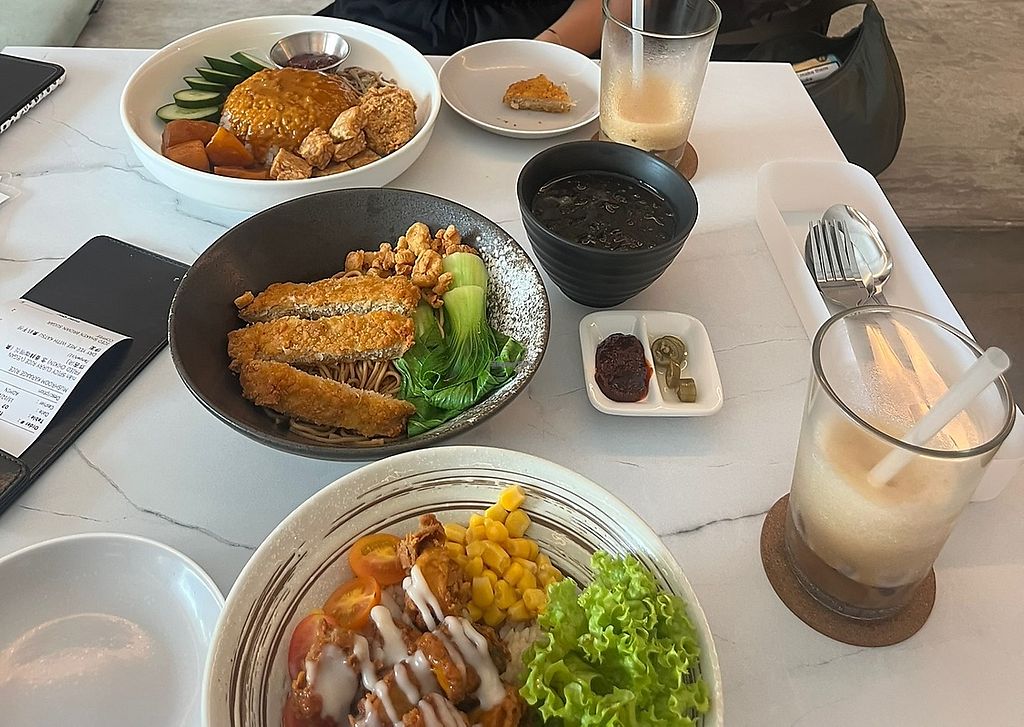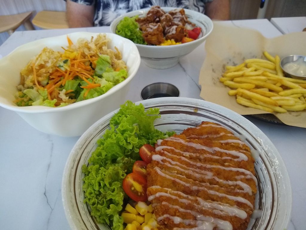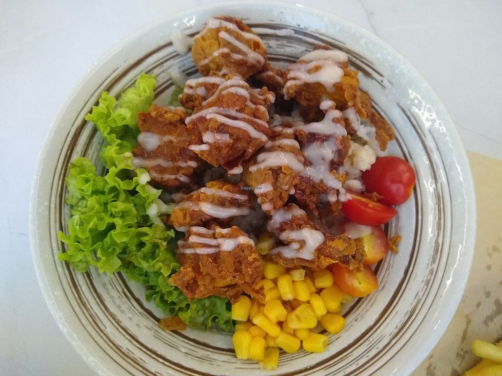 Von oben nach unten: Vegan fried chicken, Dry Yee Mee Katsu und Mushro…