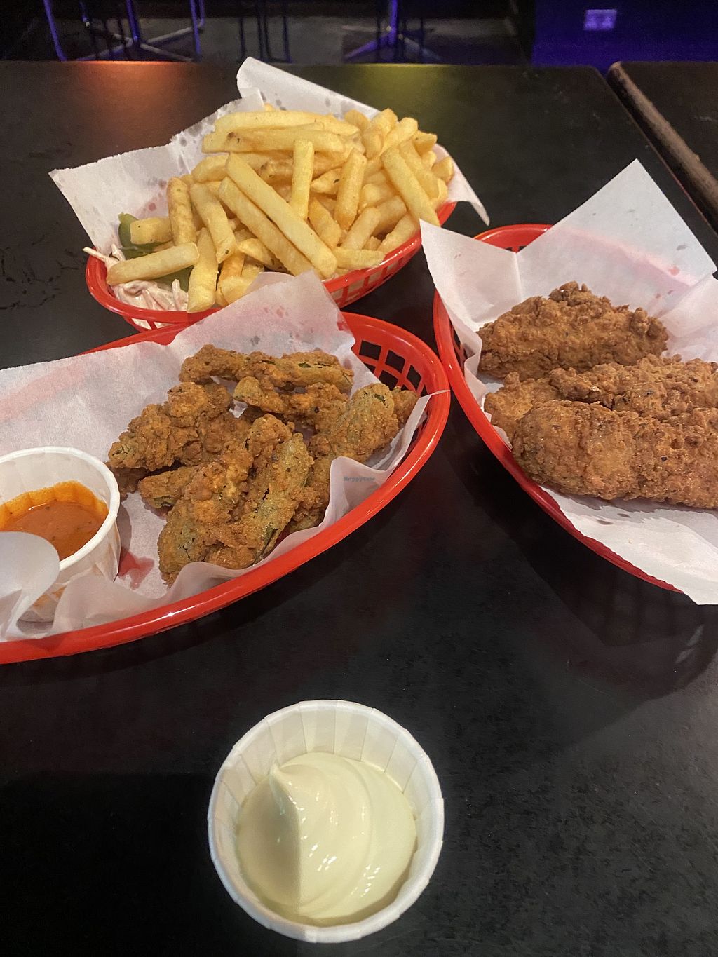 Chilli cheeze fries, chicken tenders, frickles