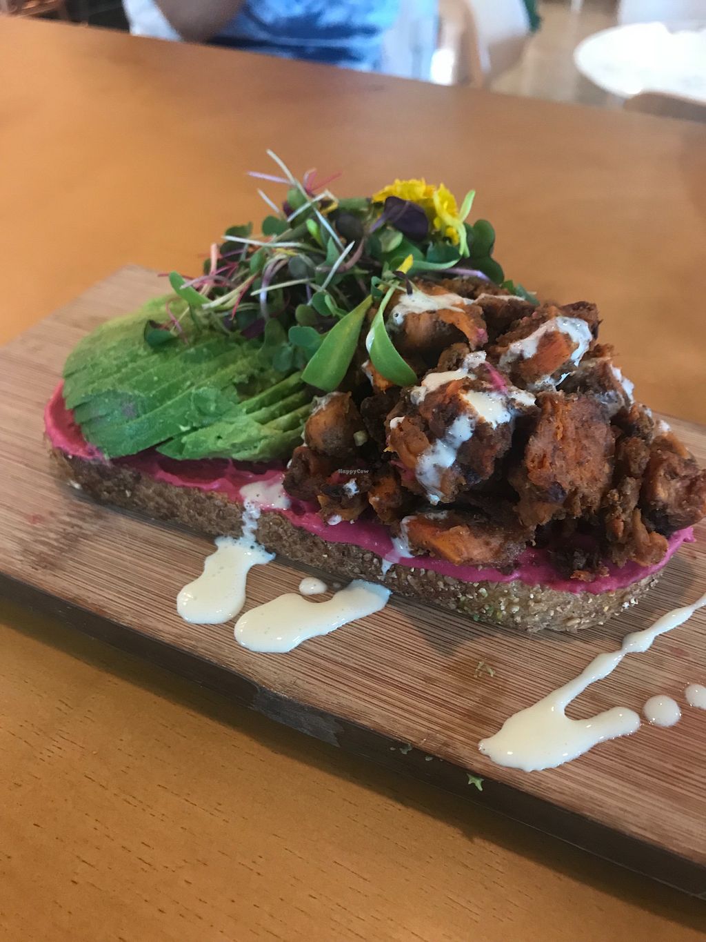 So I’m normally sceptical or disappointed by “build your own bowl” options because the servings of each topping are tiny. I had a base of greens with quinoa (they put in like a cup of the stuff), carrot ribbons, sweet potatoes (cooked with some tahini and cinnamon, so good!), zoodles, and avocado (got beautifully sliced large half-avocado!). Cashew dressing was great. Left feeling very satisfied! A perfect healthy lunch.