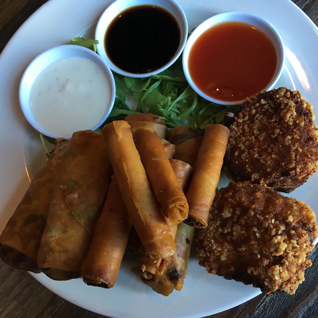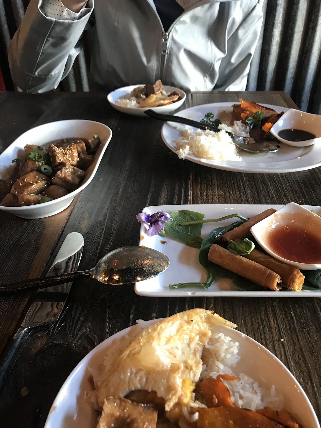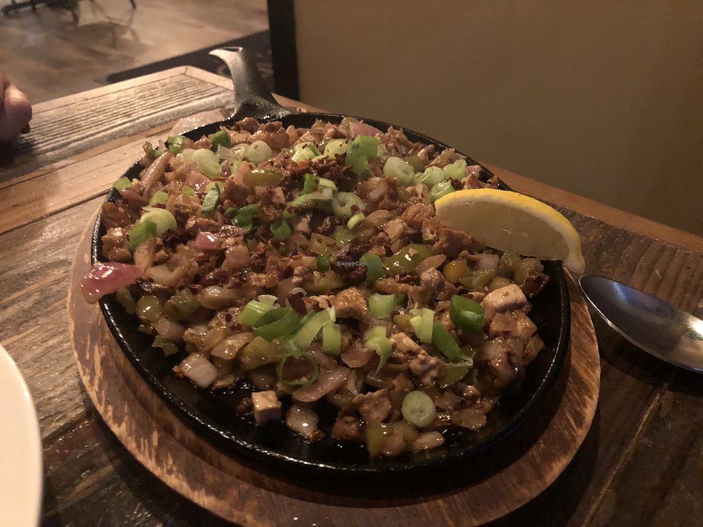 Food: we had the "crab"cakes, Laing and Sising sizzler- all really good! The sizzler and cakes were very tasty. The menu is more towards faux meats if you like that, but also options above are tofu and veggies based
