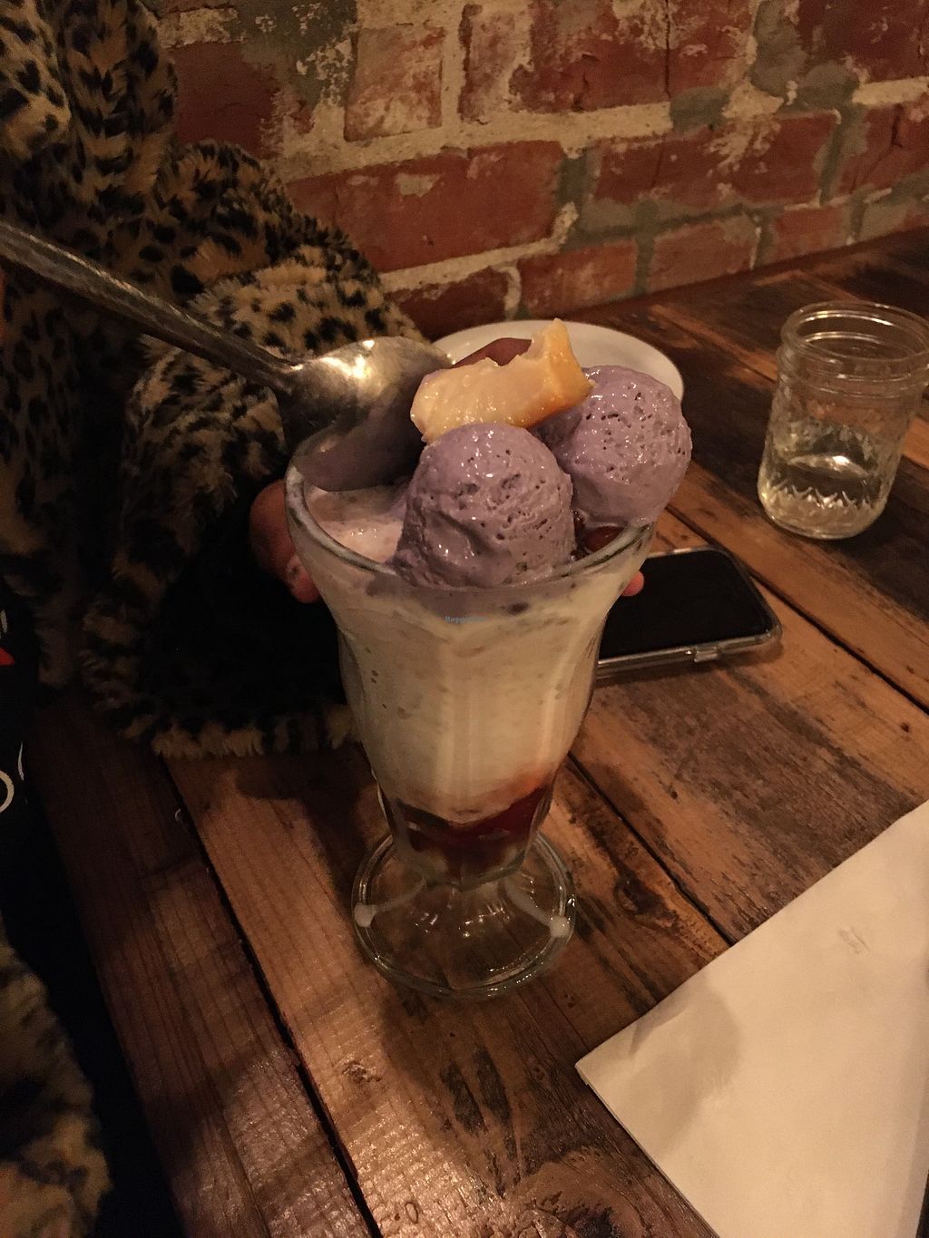 Pros: delicious vegan dishes, ube ice cream, good alcoholic drinks