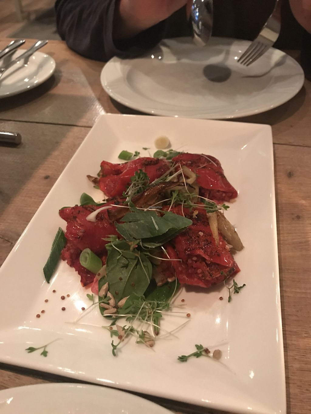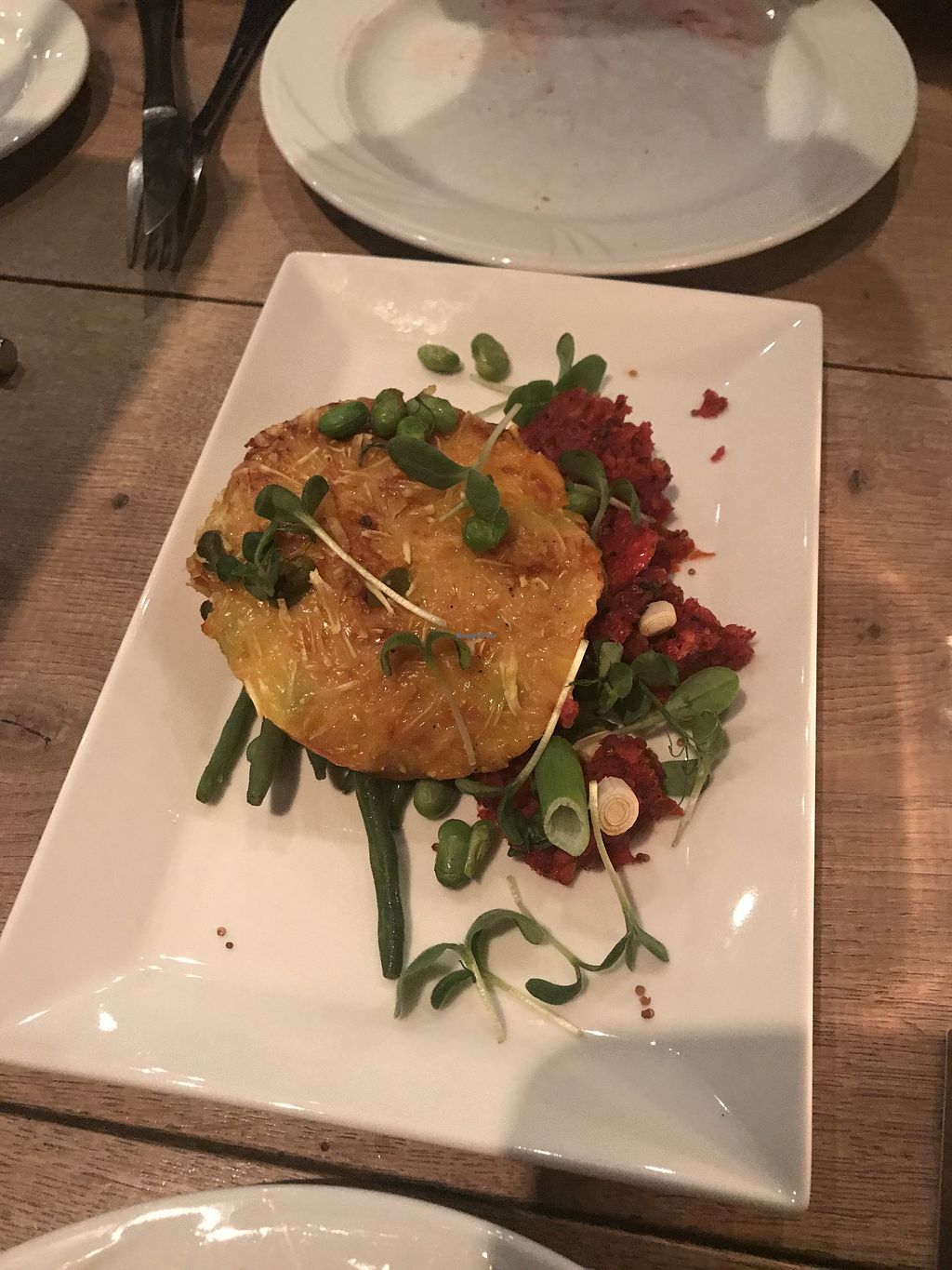 Surprised to find such an accomodating and vegan friendly place in Venlo! The staff is super friendly and really makes you feel at home. They for instance suggested swapping out butter for olive oil to serve with bread after noticing that we only ordered vegan dishes. The menu offers enough delicious vegan options (2 starters, 2 mains, 4 sides and 1 desert) You can share these dishes. They also have vegan friendly wine! It definitely looks like the chef enjoys experimenting with different ingredients and cuisines. Would recommend 😊