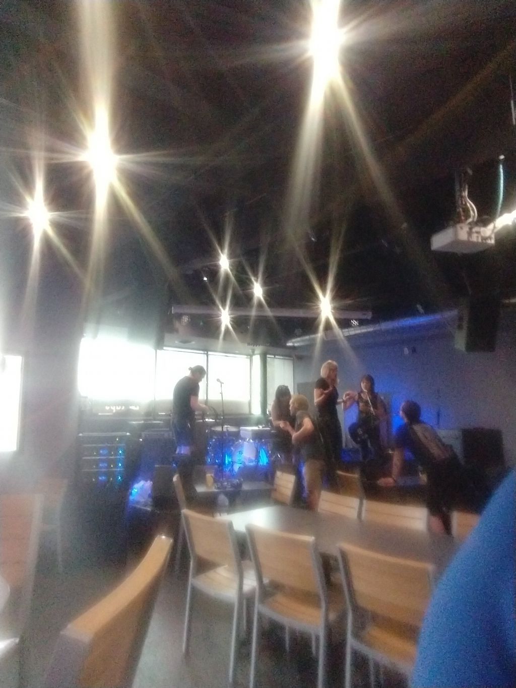 Serves meat, vegan options available. Bar and live music venue with a large offering of vegan/vegetarian on the menu. Vegan include five of the appetizers (comprising various fried foods; dipping sauces are vegan); the three salads; a vegan chili; red lentil falafel; BLT with option for vegan eggplant bacon; and street taco with options vegan chorizo. Added breakfast in 2019. Reported closed December 2024.