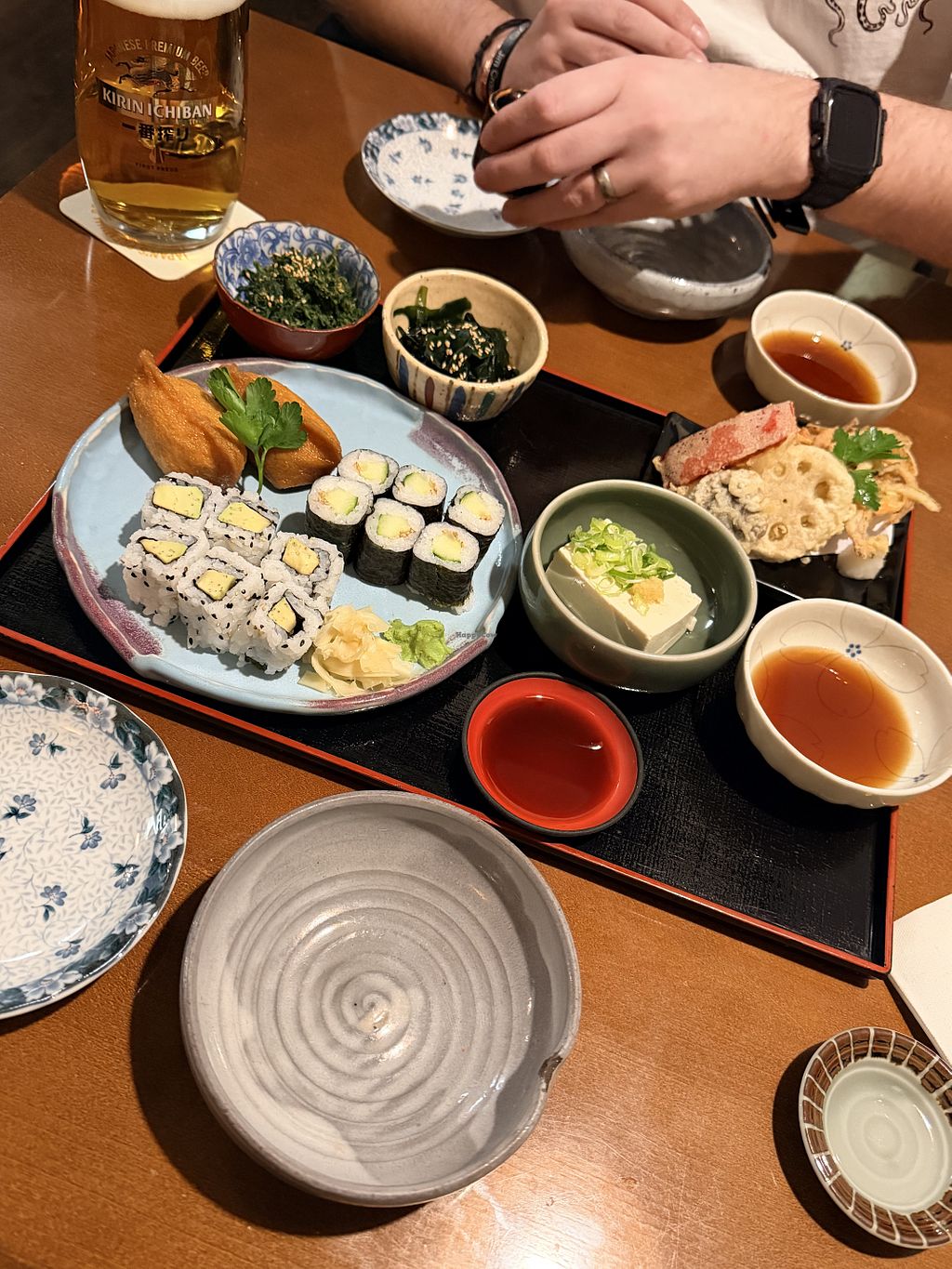 Lots of vegan choices in the menu: Sushi, Noodles, a sharing board, Edamame, Tofu. We shared the board and had noodles too. Noodles were ok, but the board was great. Good customer service and nice atmosphere