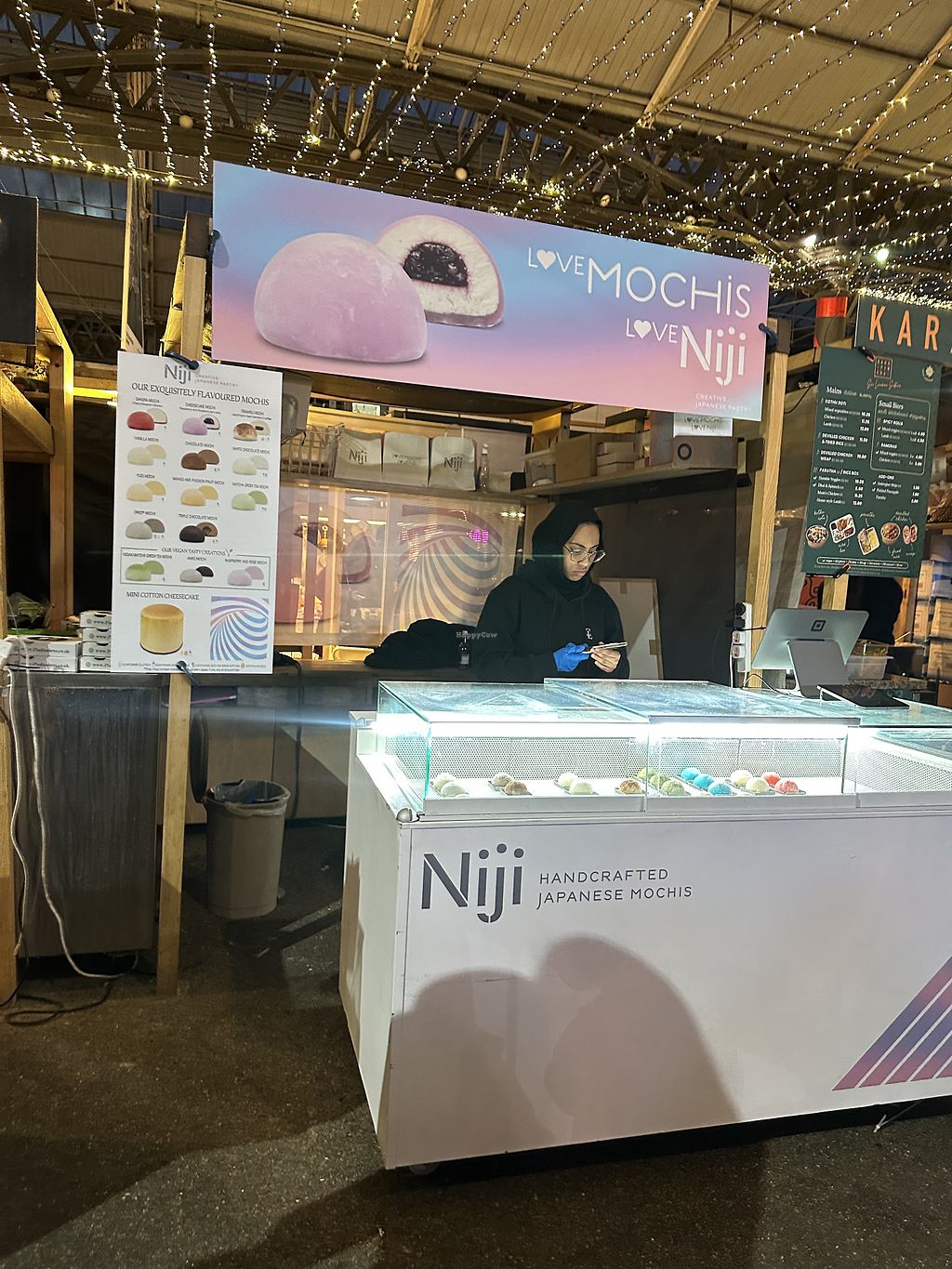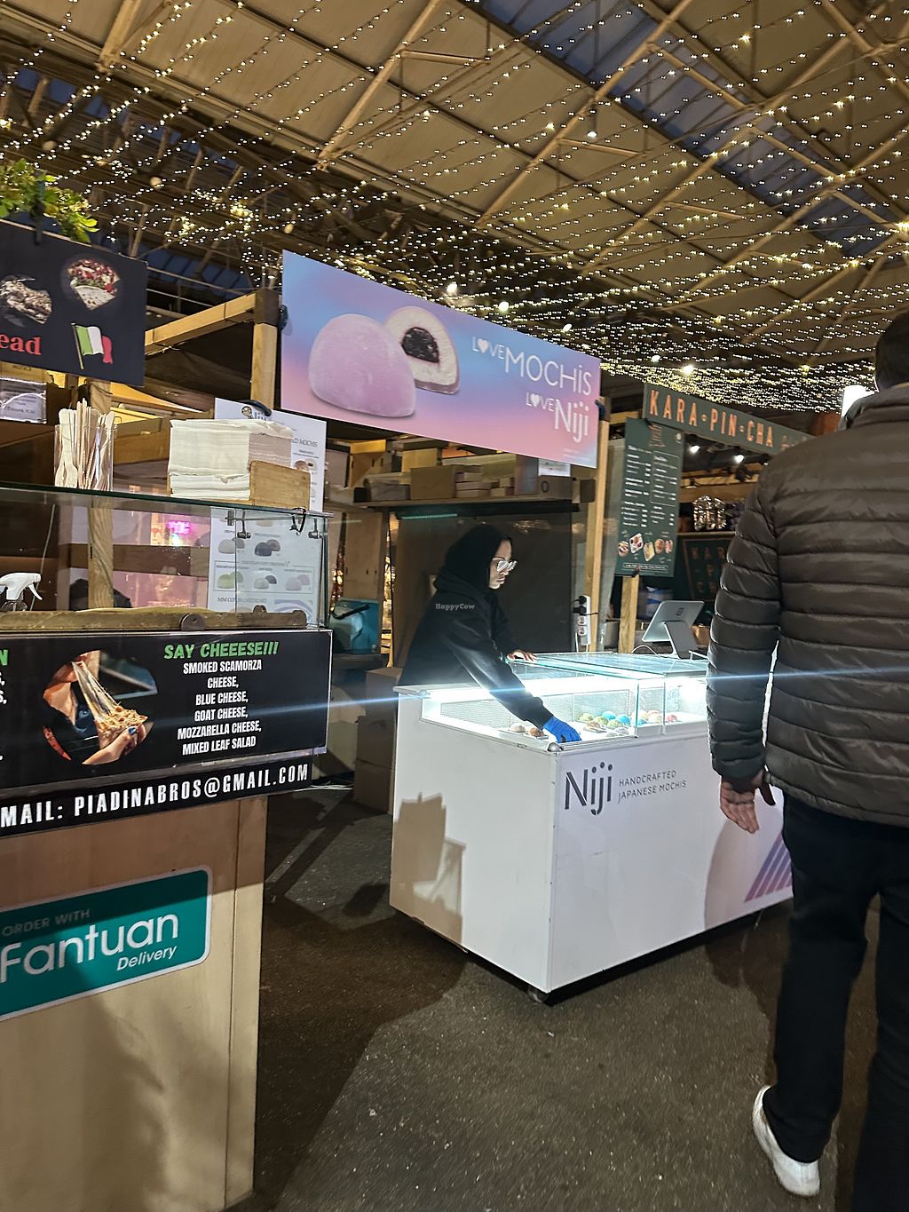 Japanese sweets vendor offering vegan mochi options. Open Mon 11:00-17:30, Tue-Fri 11:30-17:30, Sat-Sun 11:00-19:30.