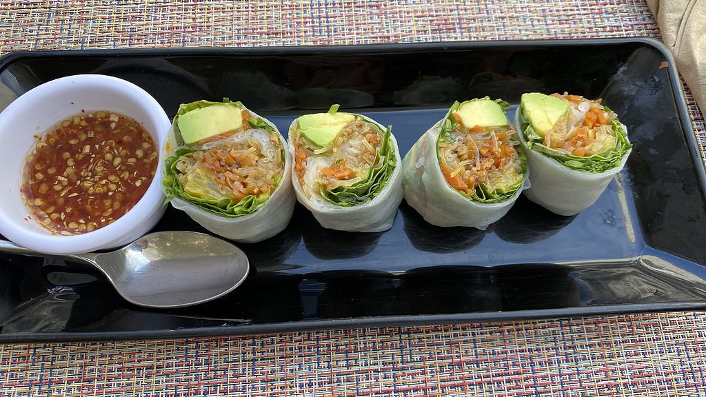 The only real options are spring rolls (you have to tell them without shrimp or scallops) and guac and hummus. It’s just two rolls cut in half, I think they’re over priced for what they are and not thaat good. It’s a nice restaurant but not great vegan options