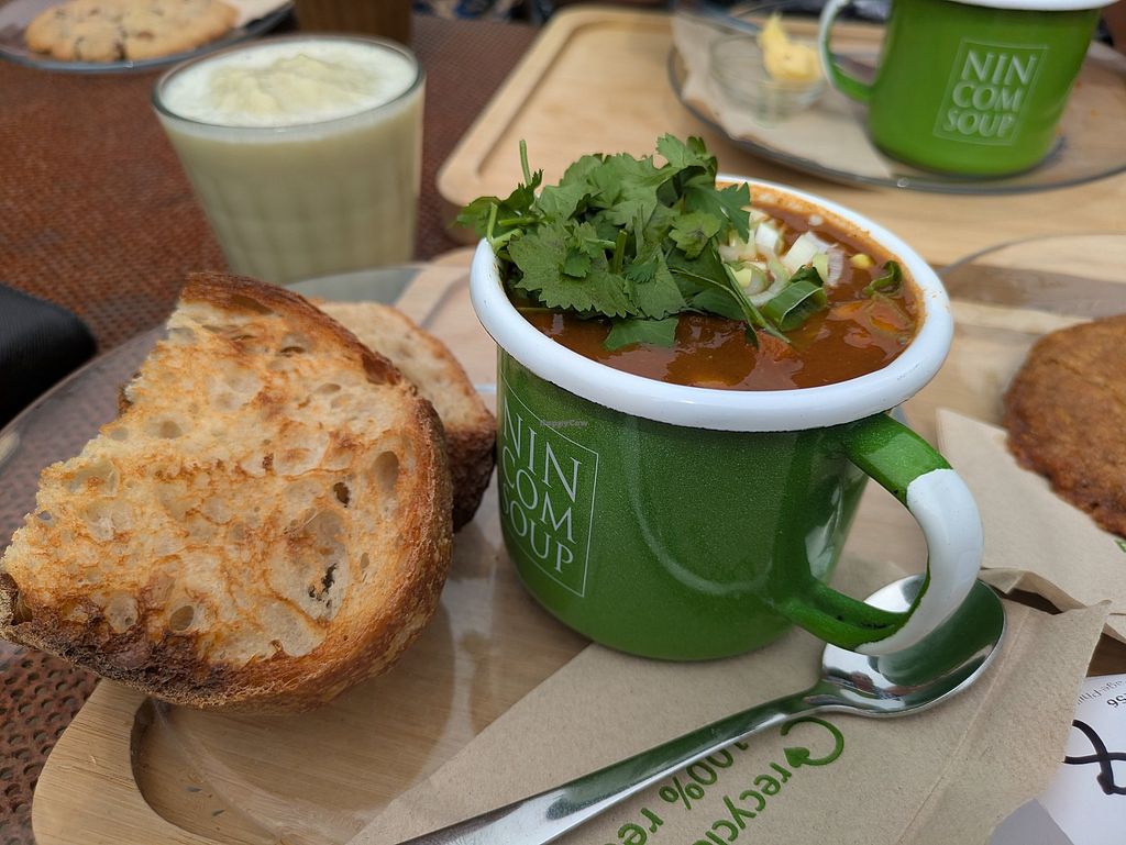 Tucked away above the Malthouse, Nincomsoup has a wonderfully sunny and sheltered rooftop garden filled with colourful flowers. Staff are always super friendly and helpful and the vegan options are excellent - they definitely go above and beyond compared to most non vegan cafes. Seed butter is made from scratch, there are always plenty of cakes as well as Docker pastries and sourdough bread, and oat milk is the default milk. Every week they do two soup options, of which one is always vegan. Soup is served in cute tin mugs with sourdough bread and usually a heap of toppings. There's also seating indoors, with some cosy booths inside the Malthouse itself, making it a great rainy day food option when you're after their delicious soups.
