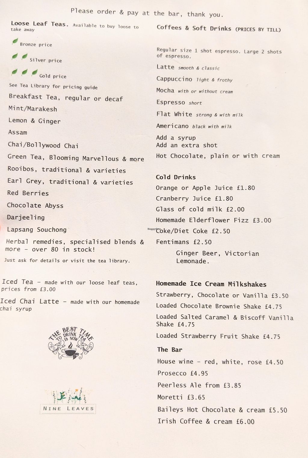 It has some seating outside which is lovely in the summer if you like to dine al fresco. Nine leaves is also dog friendly inside and out so don't let the weather put you off if you want to take your dog along with you.