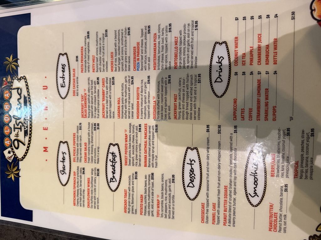 Visiting from Australia, on a road trip around Oahu we planned our stopover around 9th island - and it was totally worth it. The food is delicious and the owners are delightful, warm and welcoming. The lasagne roll and the Caesar salad were incredible, generous portions and amazing flavours. Our search for vegan funnel cake ended here - it came loaded with whipped cream and berries and was a triumph! We left full and happy, and with tips on places to visit and see wildlife. 11/10 - do it!