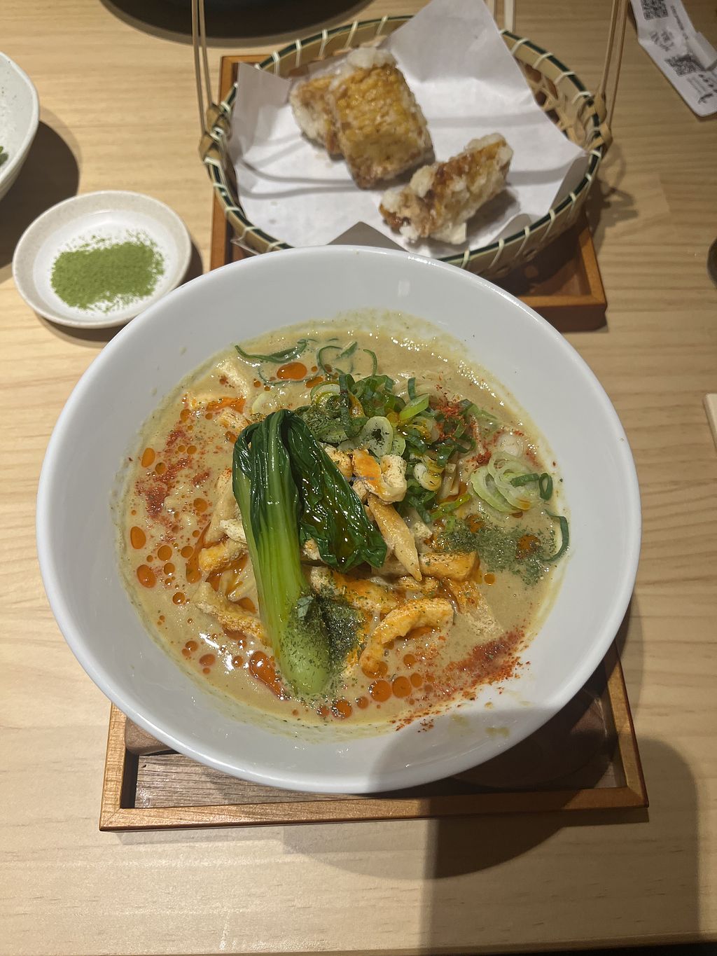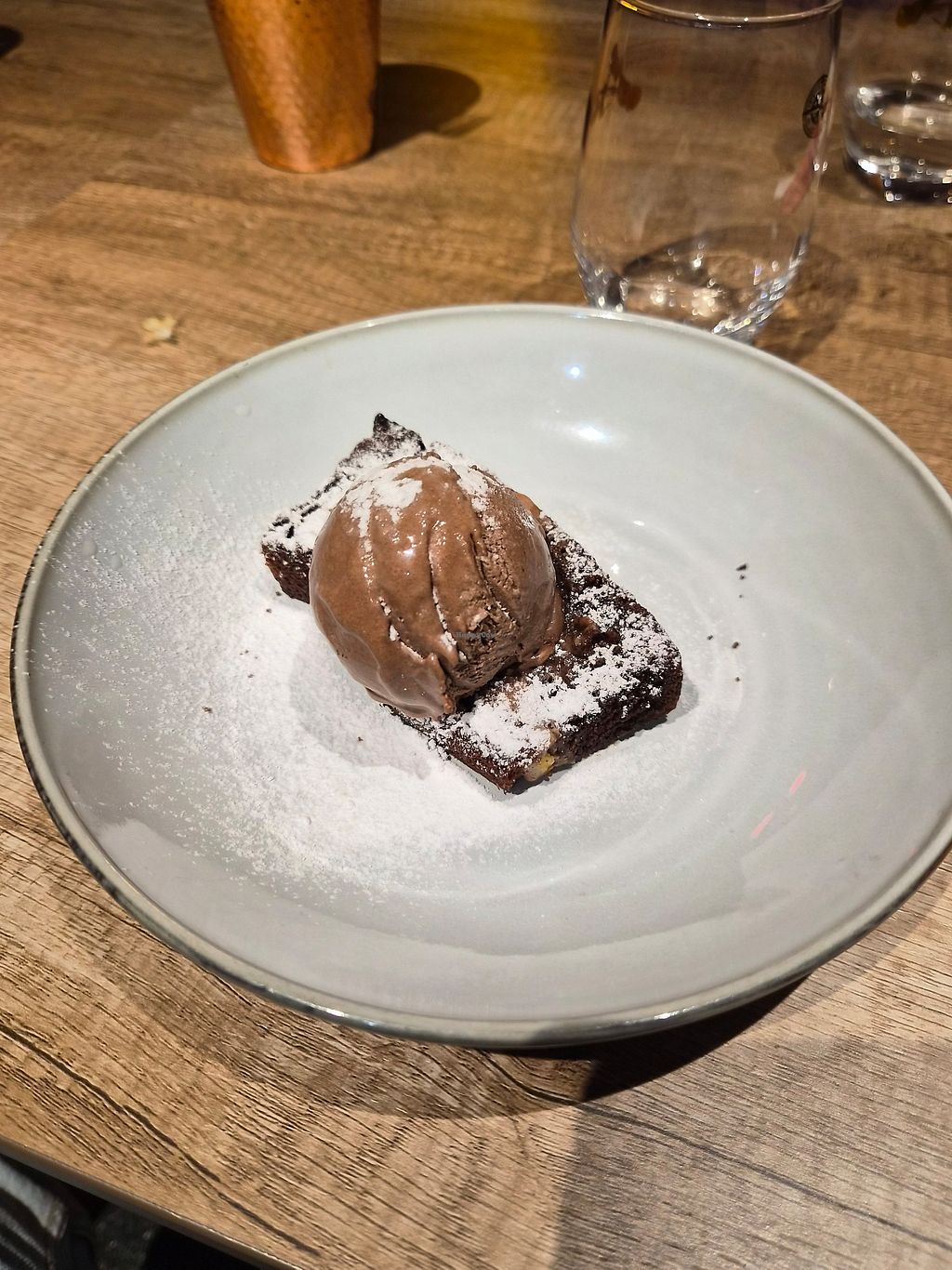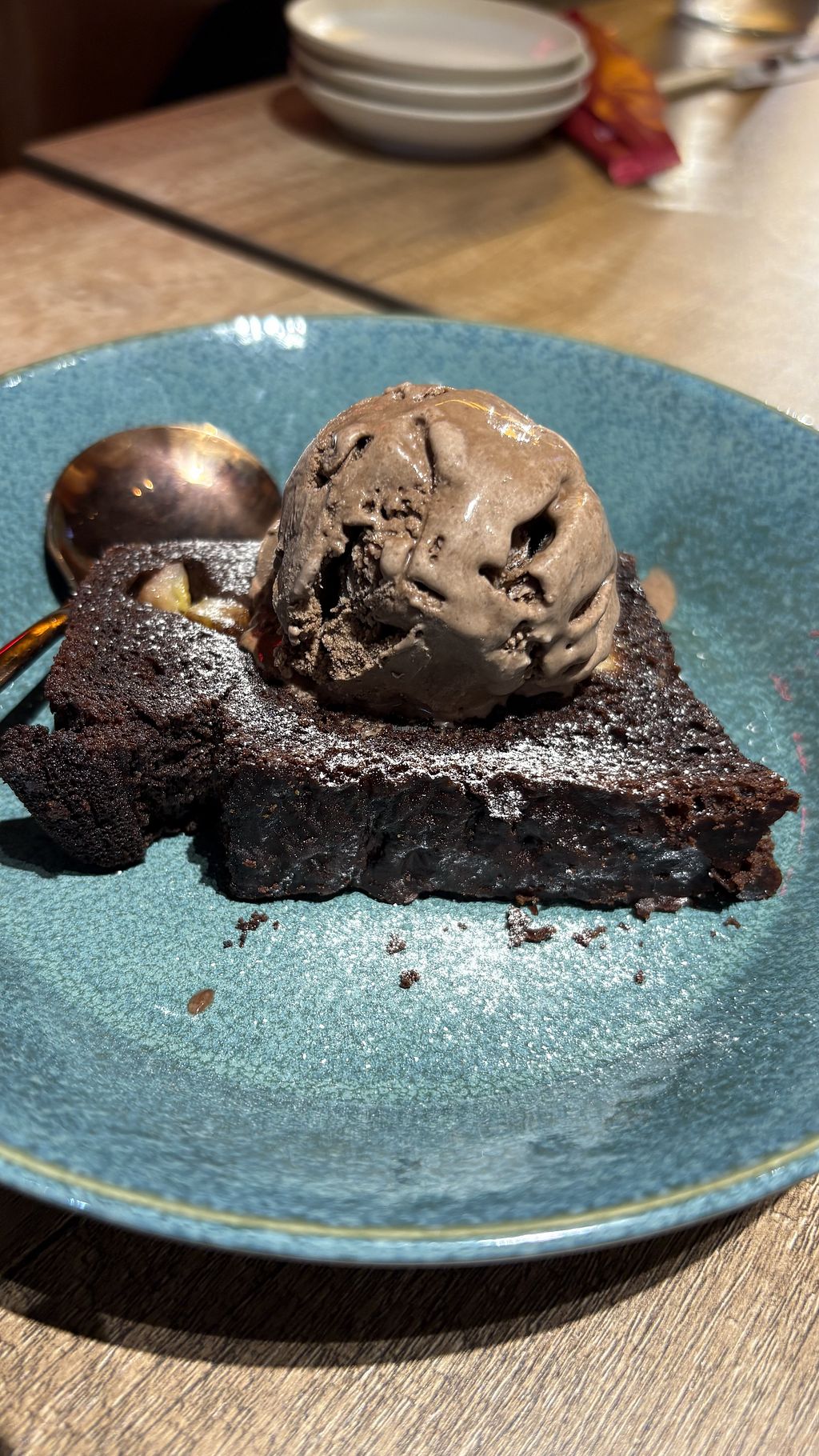 I ordered vegan tempura (which was very good), the spicy ramen (which I couldn't finish because it was too spicy for me unfortunately, but the taste was okay) and then a chocolate banana brownie with chocolate ice cream (which I liked a lot!). Staff wasn't particularly polite...