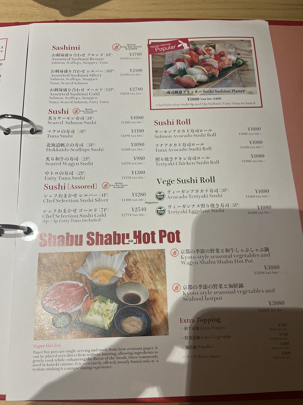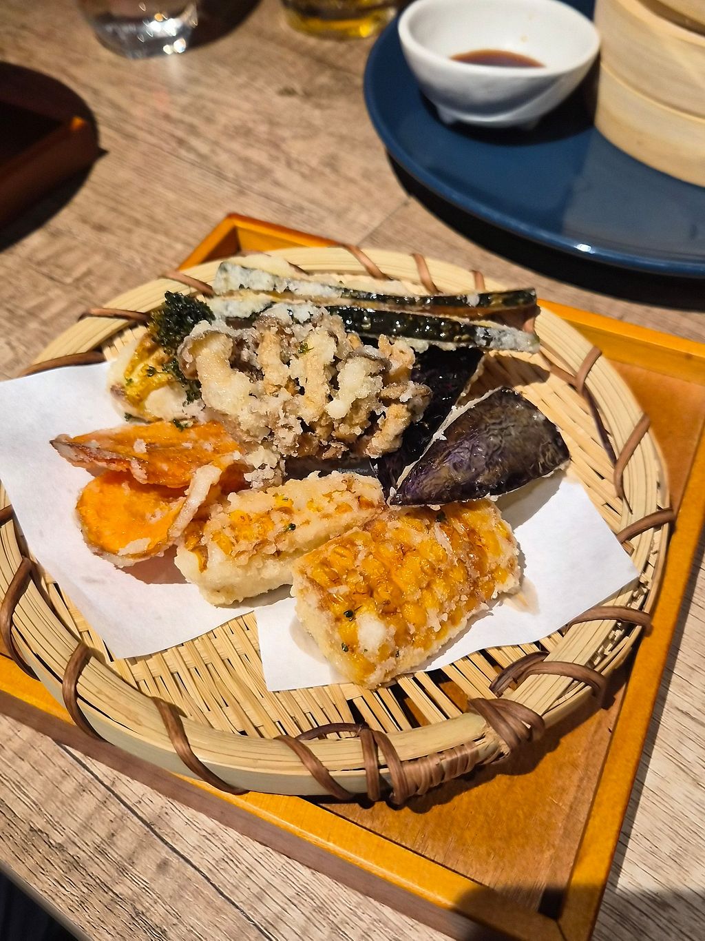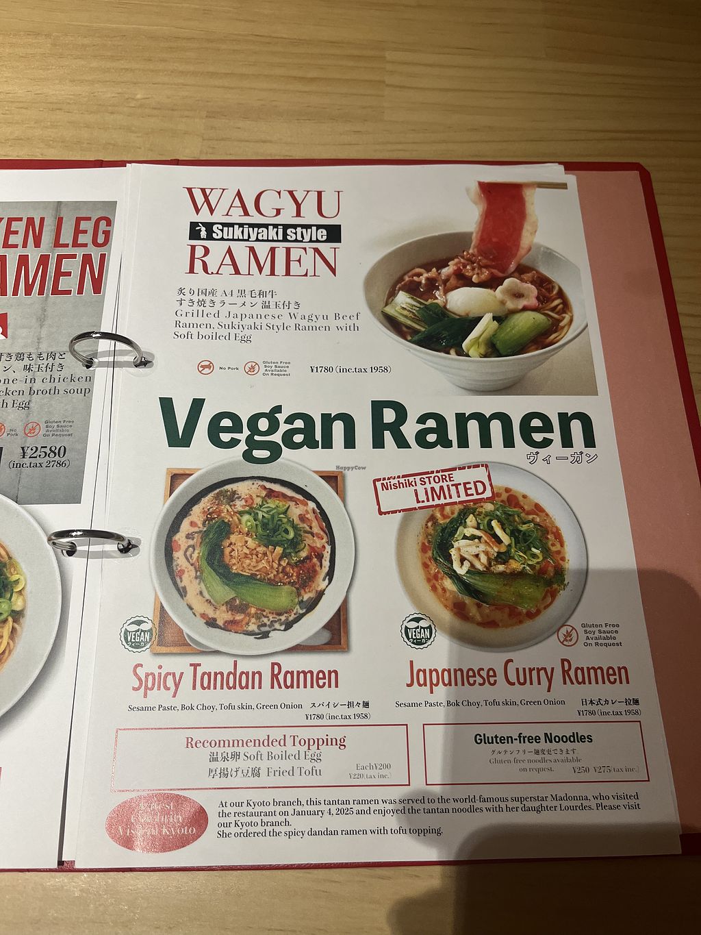 Two vegan ramen options, sushi options, tempura and dumplings. Really tasty food and the waiter spoke very good English, asking for any allergies.