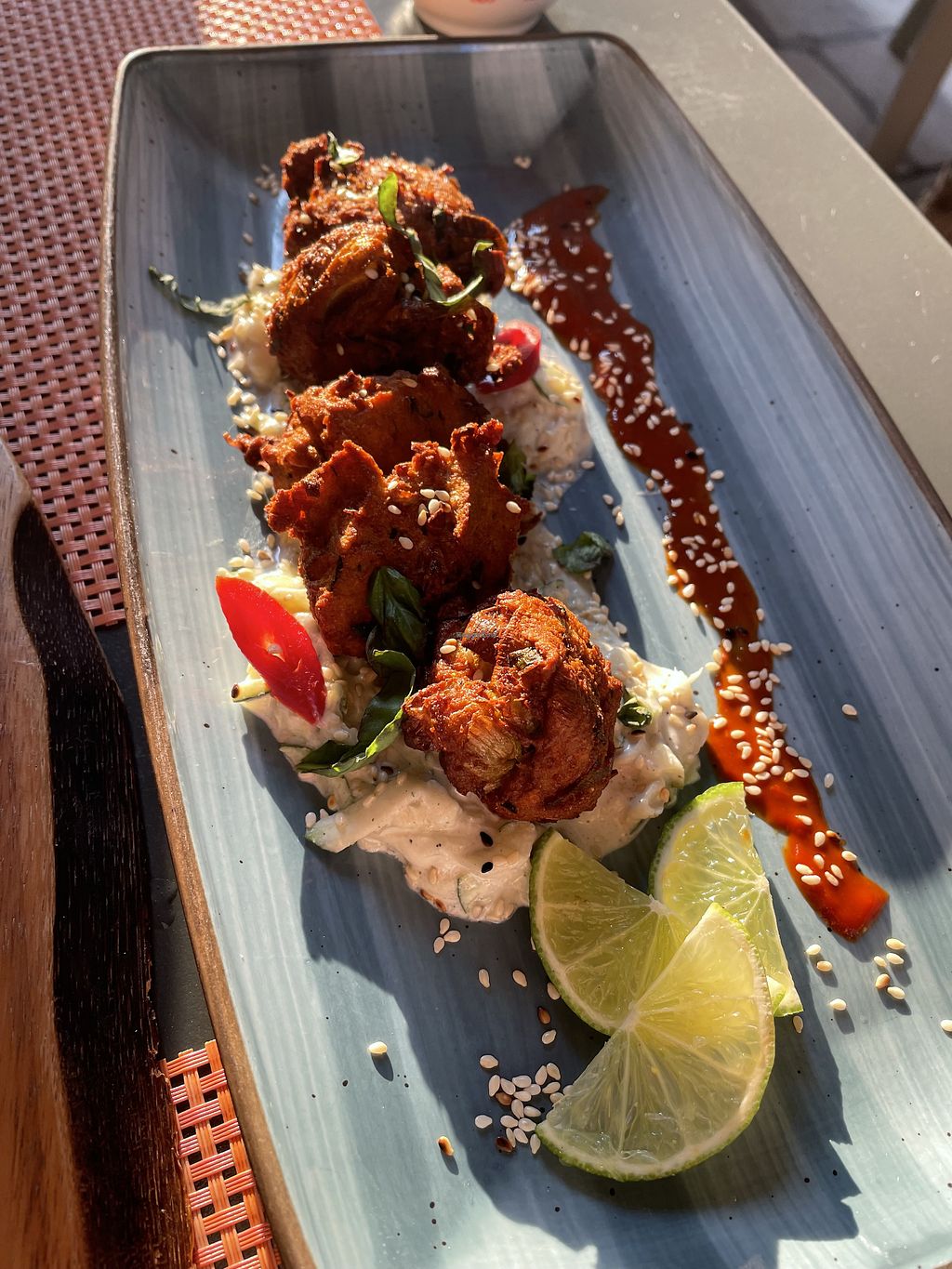Starters: Pakoras, tempura veg and salads