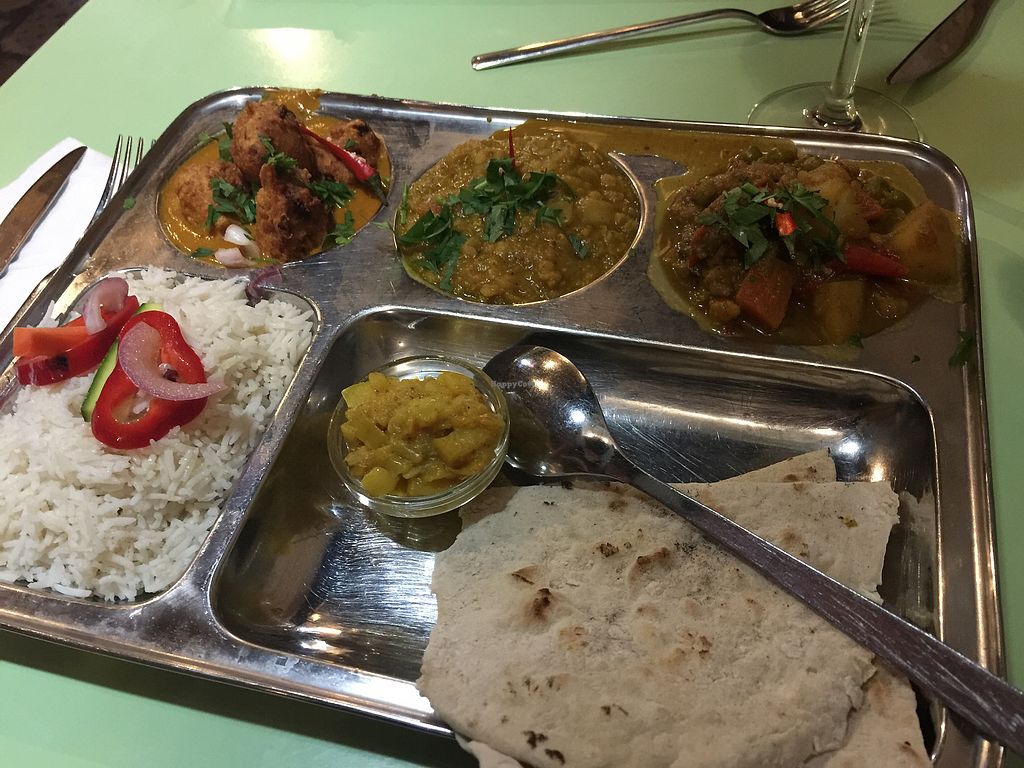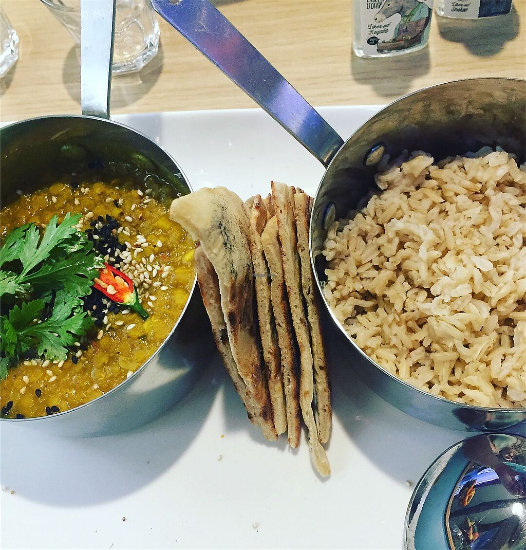 Dal, rice and naan (all vegan)