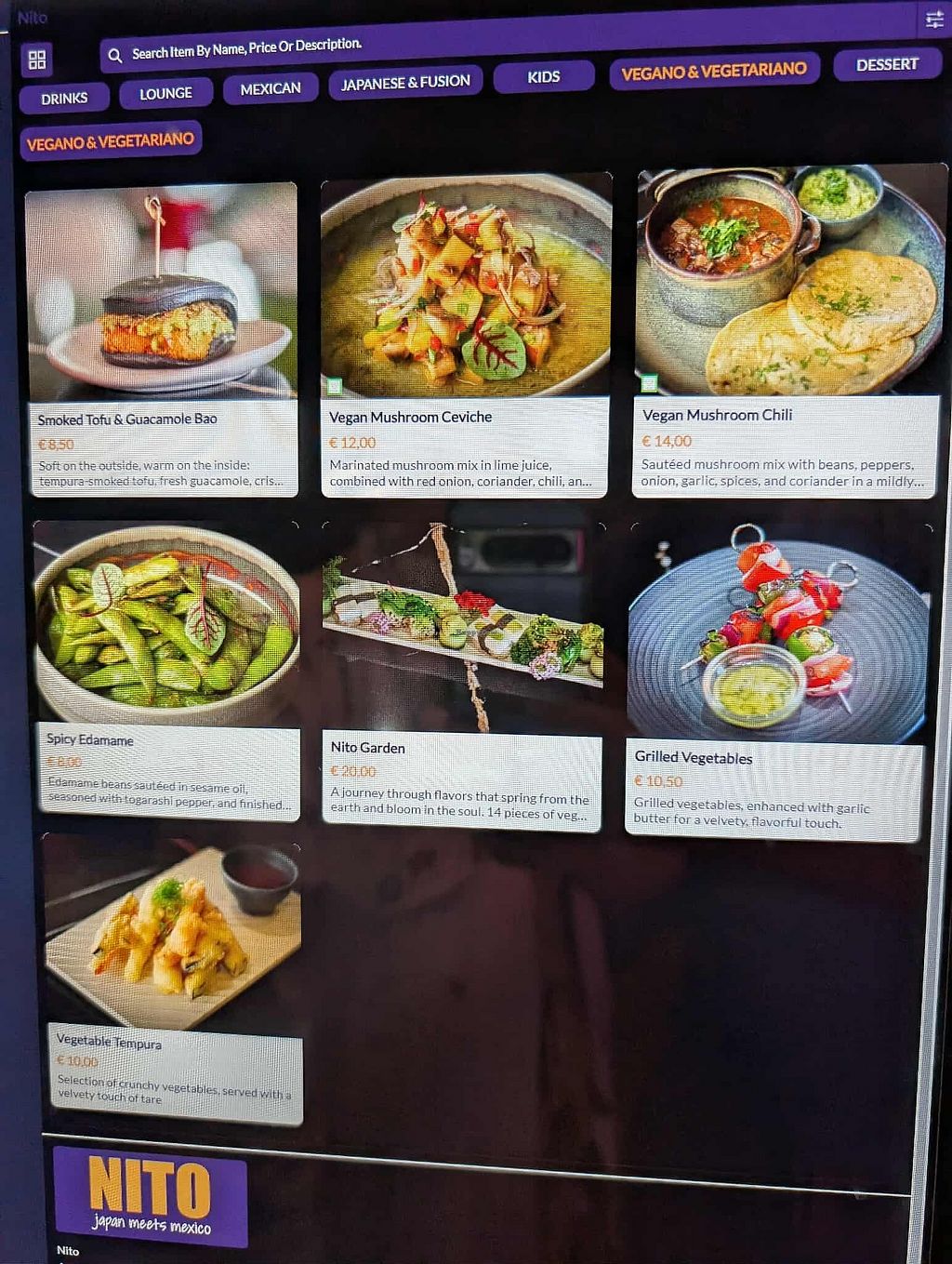 Separate section on the menu for veggie and vegan dishes. Ordered an item that wasn't vegan and waiter pointed it out to check we were happy with that even though we hadnt mentioned being vegan. Able to change our order for something that was vegan. Mushroom ceviche was really good