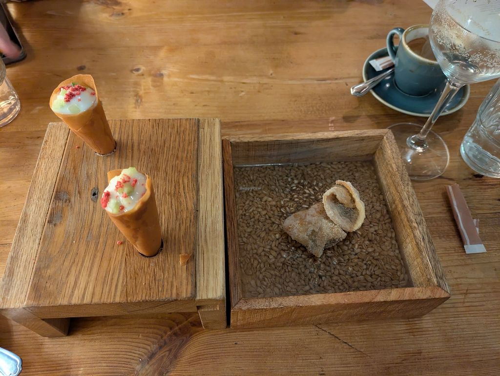 Had the Valentine’s Day menu costing £50 per person (£130) bill. The first dish was the best and it got worse as we went along. For the price you pay for the food here, we expected a lot more. Some of the dishes were seemingly bought in and not made in house (a single chocolate costing £10). The service was very rushed and feel the staff were a bit unfriendly - we saw the back of servers before the food even landed on the table. Oh and the service charge they include on all bills is ludicrous for the service given. Shame really as we were recommended but won’t be returning. Sadly it is doing the vegan community a disservice ripping us off!