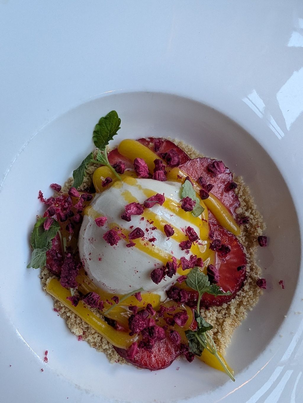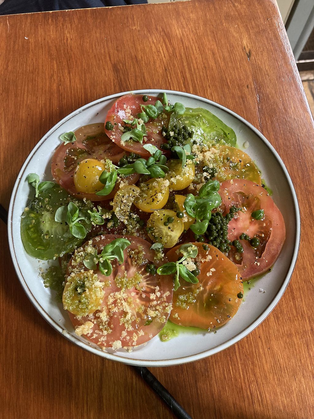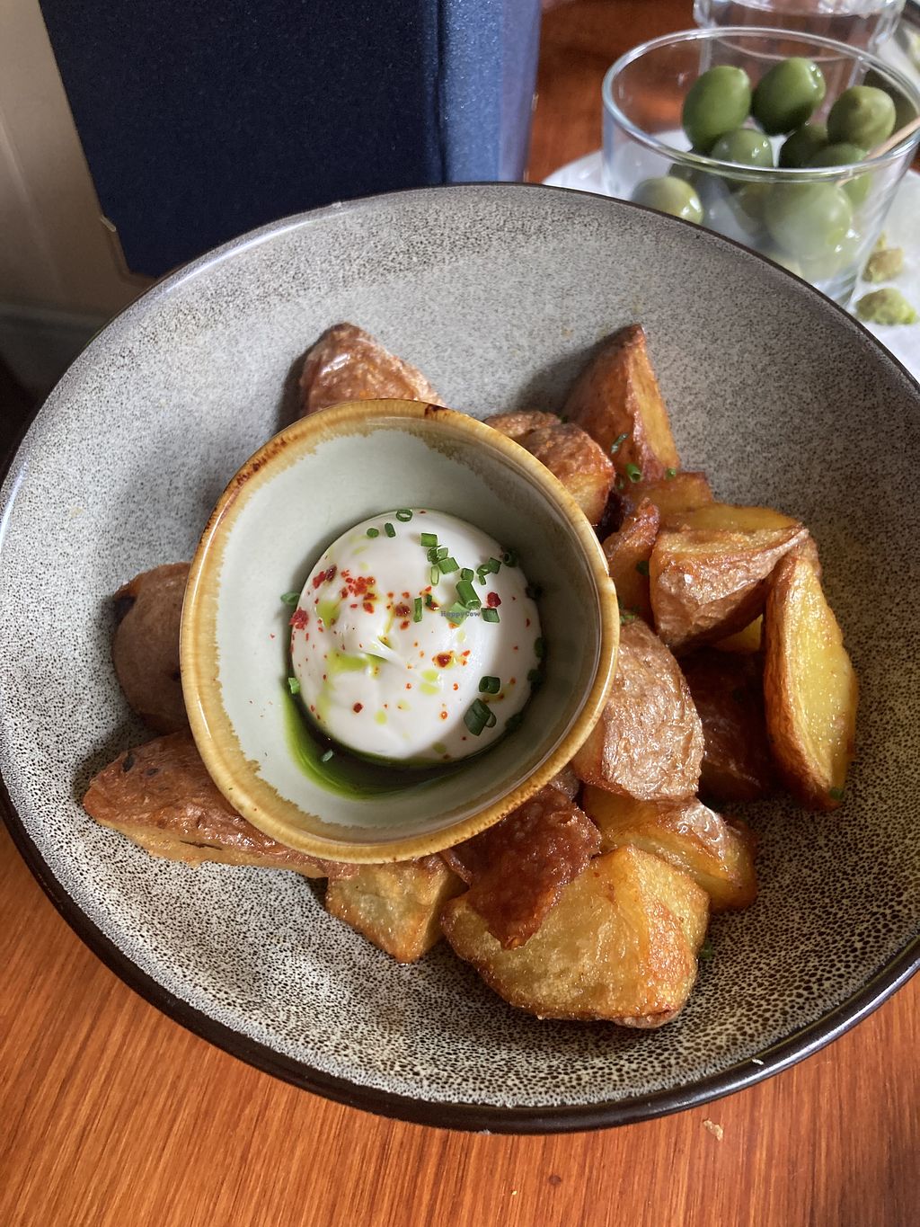 I loved it here. The wine was delicious. My favourite thing was the fancy hash browns which were super crispy and the corn ribs which had tonnes of flavour. I loved the camembert too. I wasn't a huge fan of the peach salad, it was a bit too floral and the veg was quite garlicky and a bit average.