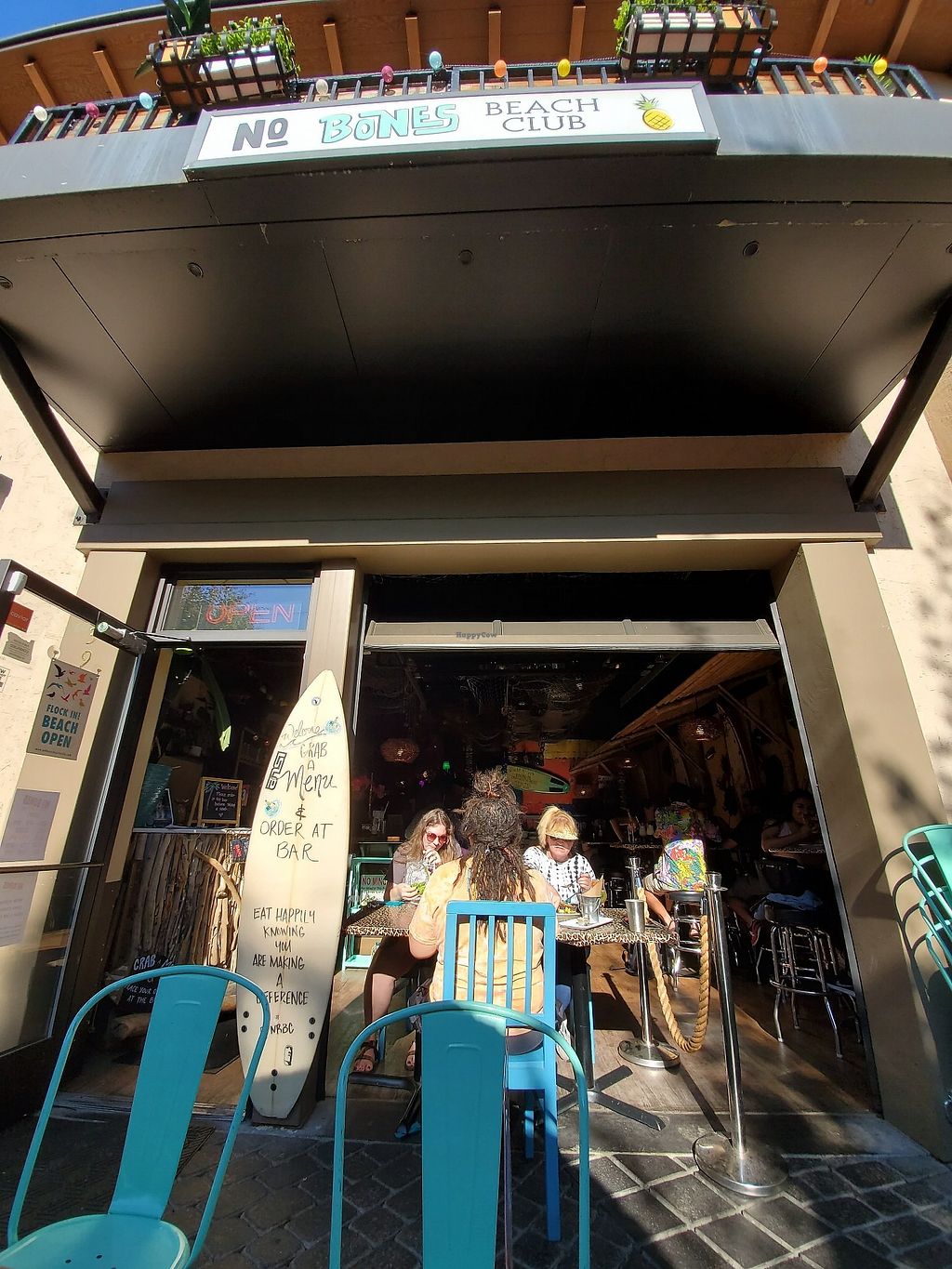 No bones is a tiki/Hawaiian style restaurant of sorts. They serve a cocktail menu with tiki drinks, and their decor brings in a lot of the fun elements of tiki bars.