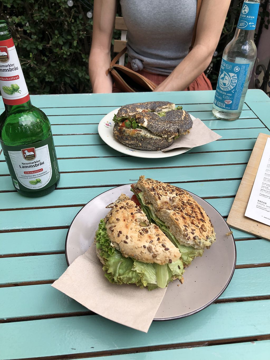 We got the bagel sandwiches with basil spread, smoked tofu, tomatoes, mustard, and lettuce. Both bagels were excellent. Cool vibe here and I love that they have so many vegan options. Good outdoor and indoor seating.