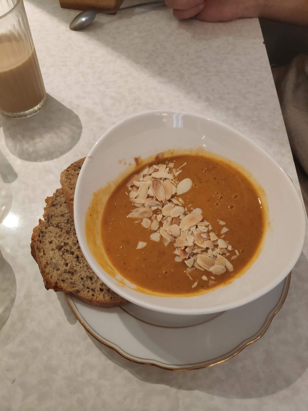 Read moreThe café is 100 % vegan and they offer both sweets, breakfast and lunch. We ordered the daily soup for lunch which we got a slice of bread with. The soup tasted great and it felt like someone had put a lot of love into it. The interior is cute with a lot of stickers and armchairs, the place is also located in a nice neighborhood.