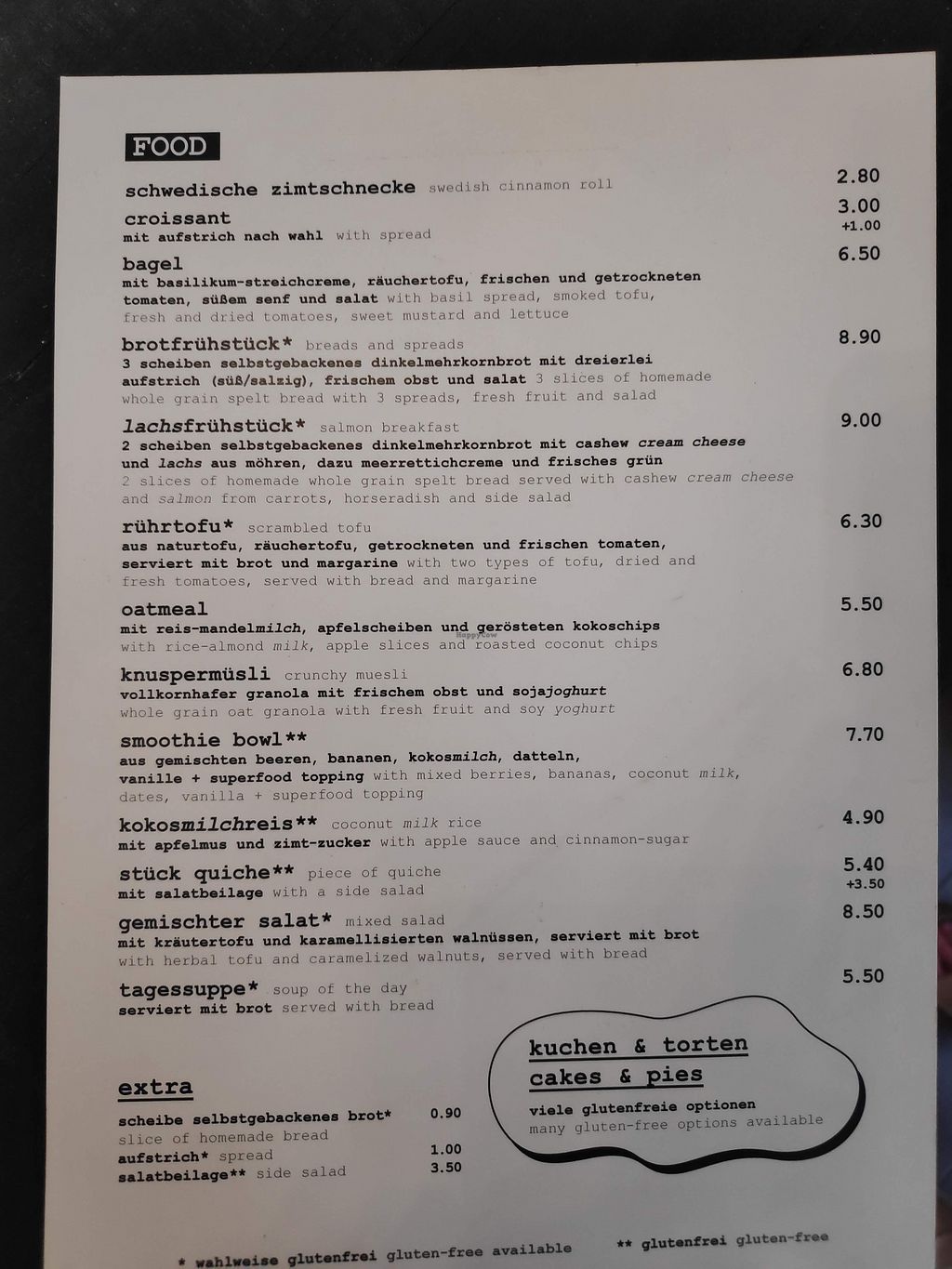 A large vegan cake selection, savory and sweet meals and breakfasts, snacks, beverages... they offer you everything in vegan! A real advantage is that many meals can optionally be made gluten-free or are gluten-ftee already. The xombination gluten-free and vegan is rather rare. It was a little bit full saturday afternoon but we still got a place.