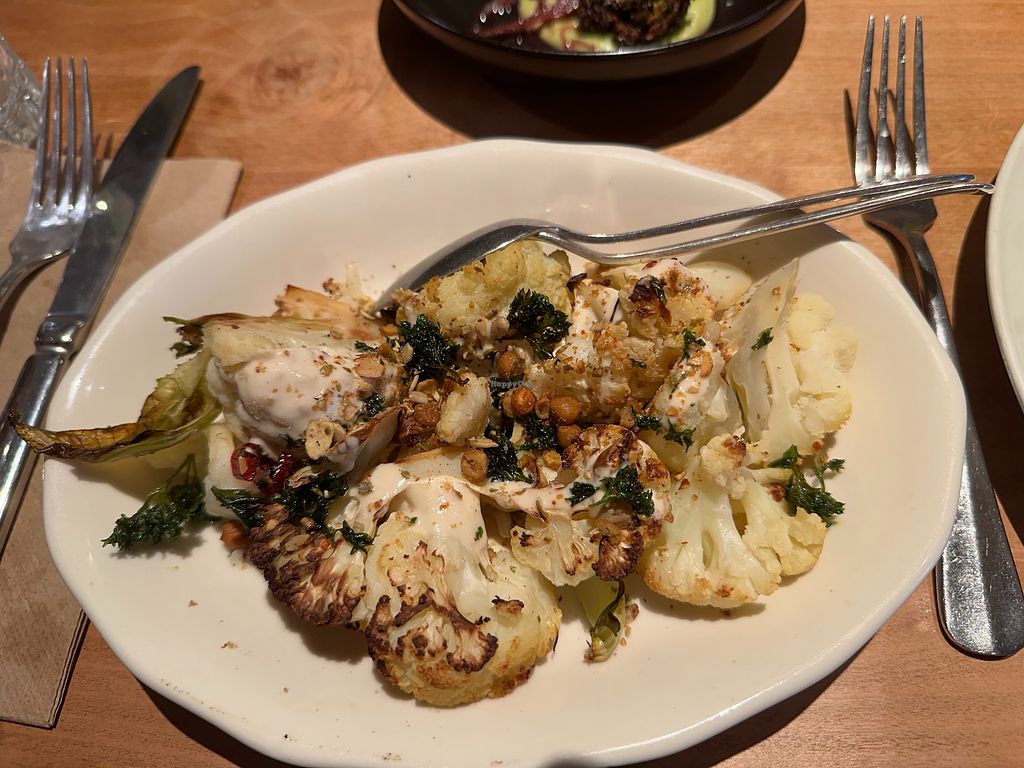 Stylish but casual bistro-style restaurant. We sat downstairs near the open kitchen. Great view from upstairs room. We really enjoyed the agria tart as our main dish (with roasted cauliflower side in a Middle Eastern style), and the falafel small plate was a great variation on a familiar dish. The vegan dark chocolate ganache for dessert was a yummy way to finish the meal! Friendly service from the staff.