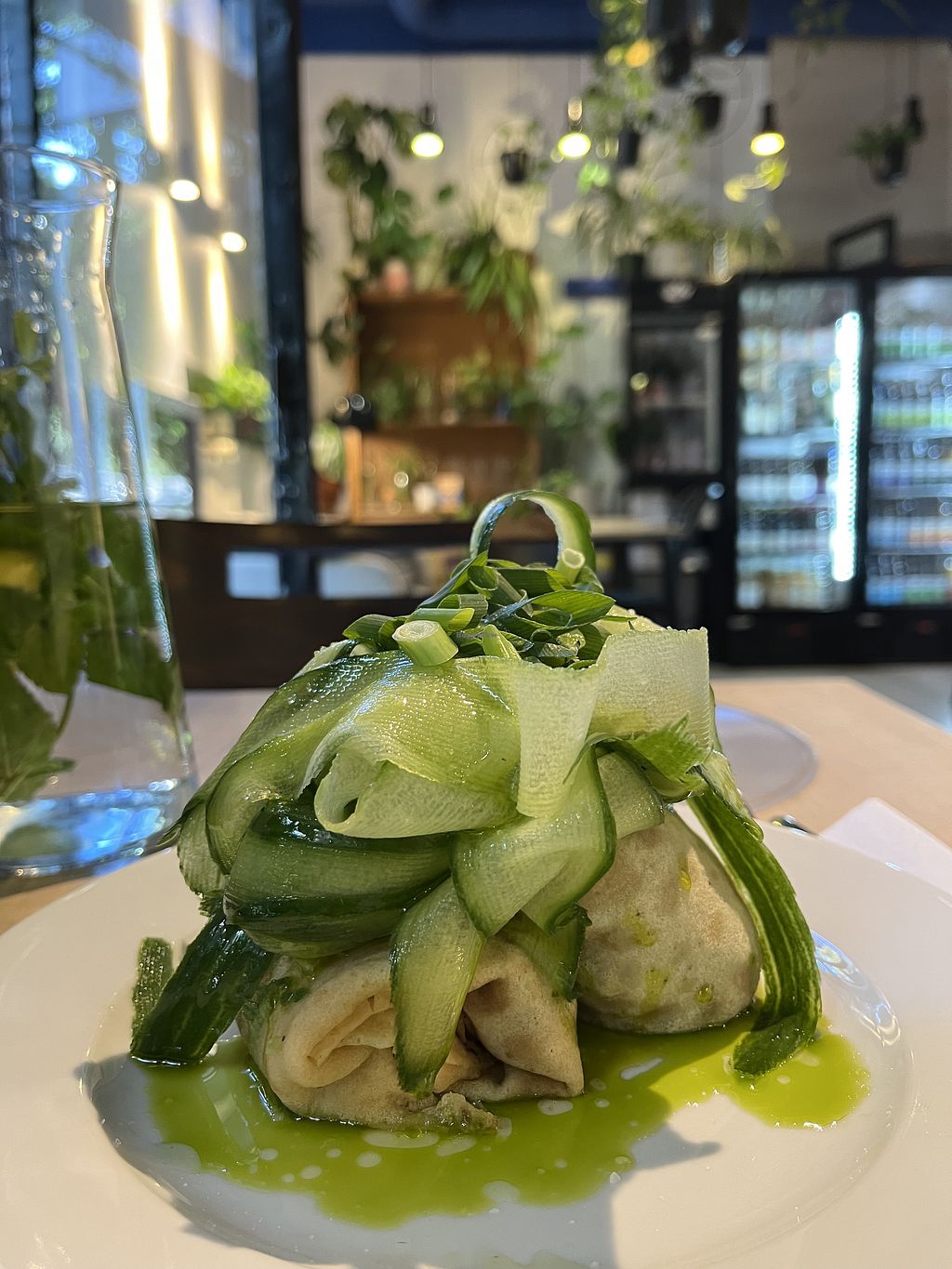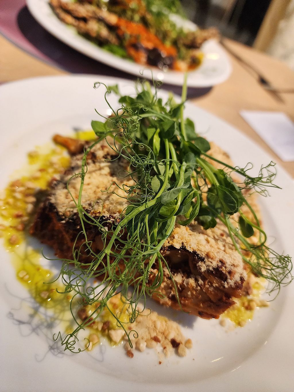 At our server's recommendation, we tried the lasagne and roasted eggplant main courses. I'd read someone's review that the lasagne was the best they'd ever had, and while it WAS delicious, the winner was the eggplant! Served with a tzatziki sauce, tomato butter, chimichurri, and seed crackers, it was extremely flavorful and had so many tastes and textures. I'd highly recommend this dish (and the lasagne too). We also enjoyed some Polish wine and beer. Natalia was so informative and helpful, and we appreciated that she took the time to chat with us and help us choose what to order. We can't wait to go back!