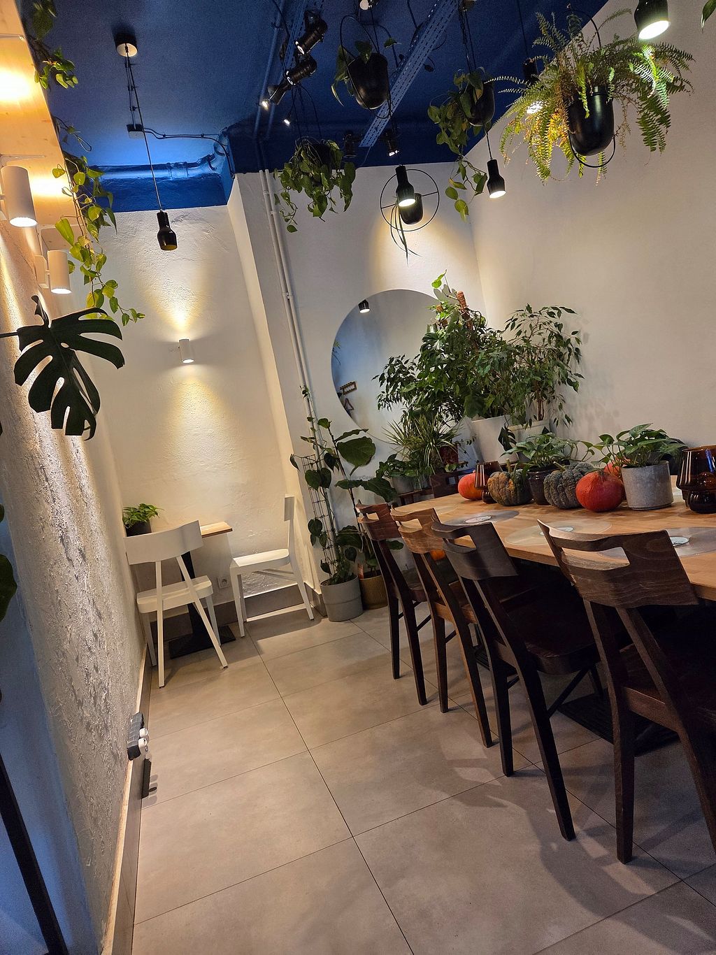 Vegan restaurant offering European cuisine, serving gourmet full breakfast and dinners, with soups, sandwiches and cakes for lunch. Starters include flat bread tacos, pickeled carrot with nori, capers and red onions, and eggplant with cream and balsamic vinegar. Open Mon-Sat 09:00-22:00, Sun 09:00-21:00. Closed Mon-Tue.