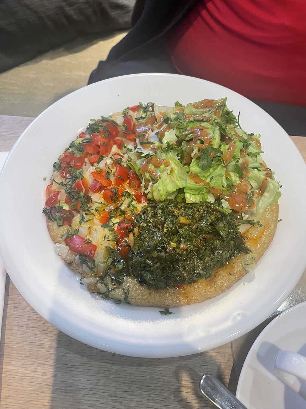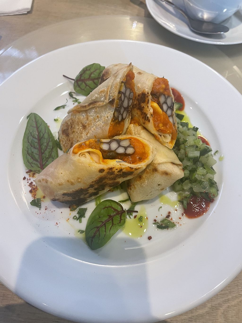 I learnt about this relatively new cafe via HappyCow and I’m so glad I went! The flatbread tacos with pickled carrot, nori, capers and red onions were my favourite! So much flavour and the perfect portion size. I also ordered the pumpkin soup and potato cake spring rolls. Everything I had was delicious and so beautifully presented. The owners and staff are lovely and make you feel at home. They have an English menu and we’re happy to help with answering any questions. I’ll definitely visit again!