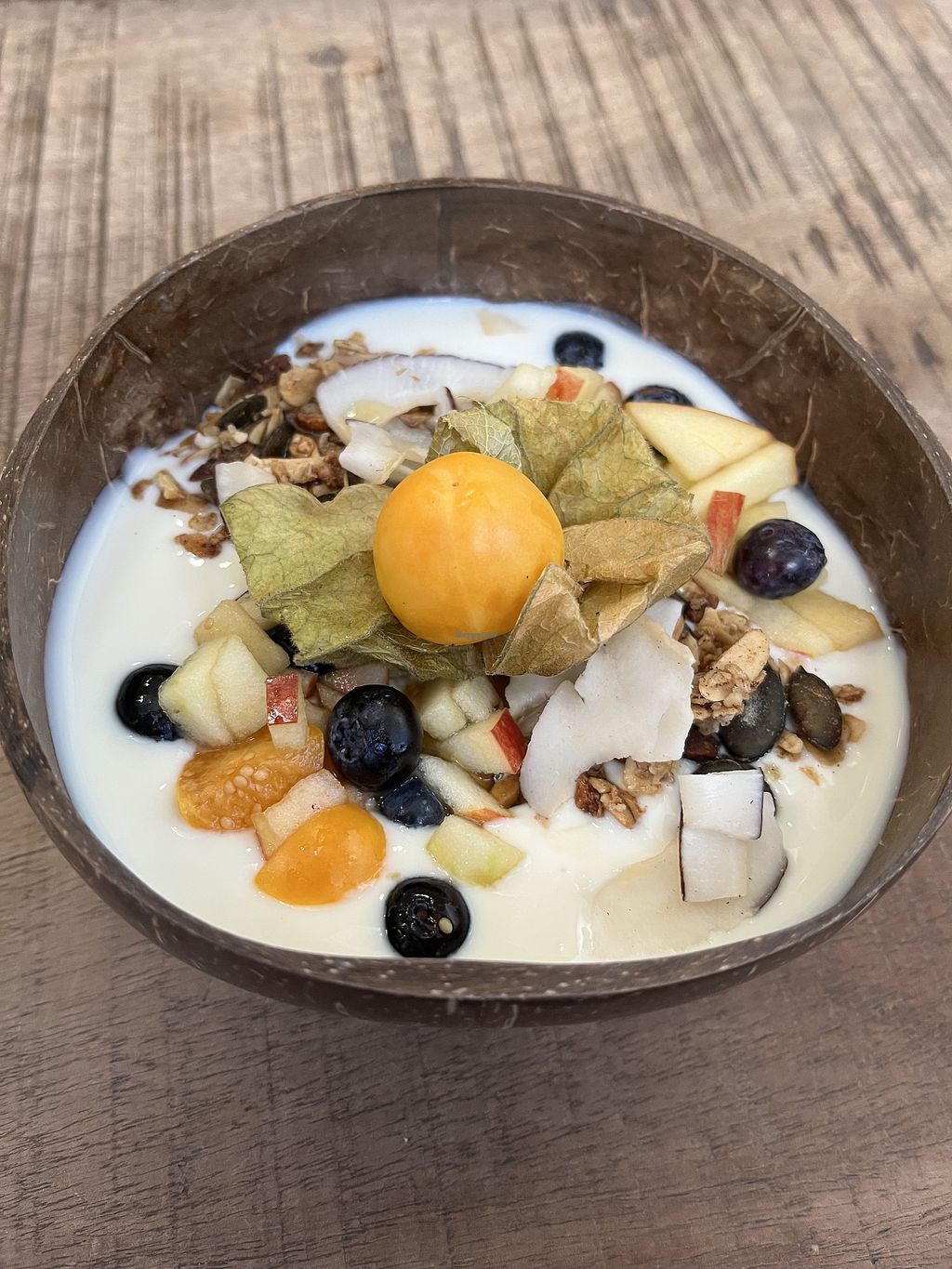 You can choose plant milk for your coffee. There are other vegan options available, like vegan breakfast or smoothie, yummi vegan cakes and from spring to autumn delicious vegan fruit ice cream as well (under the humble name 'bestes Eis' that isn't deceiving).