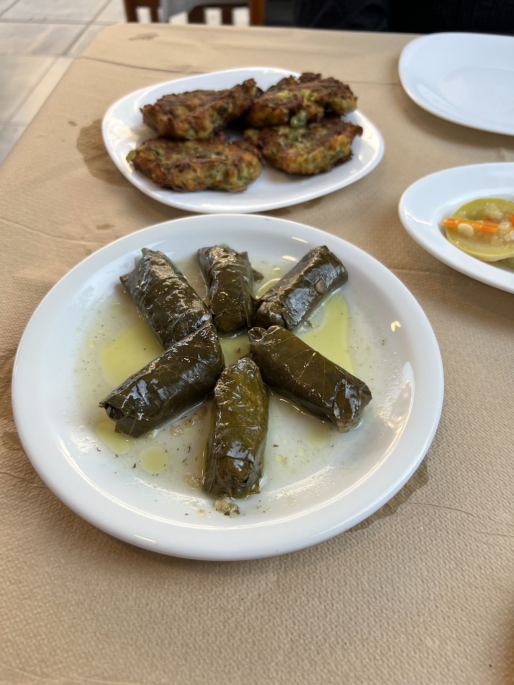 I had the fried Zucchini pies and the stuffed wine leaves and it was delicious and the service was very friendly and helpfull. But they haven‘t very much vegan food, Bit fit lunch it was good