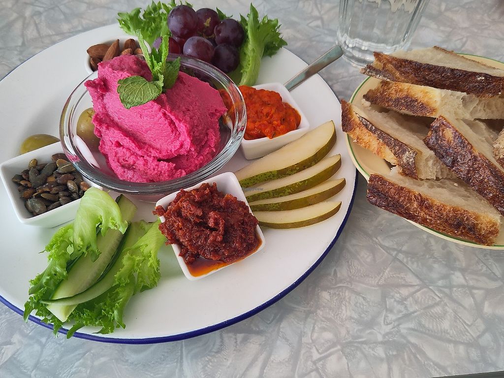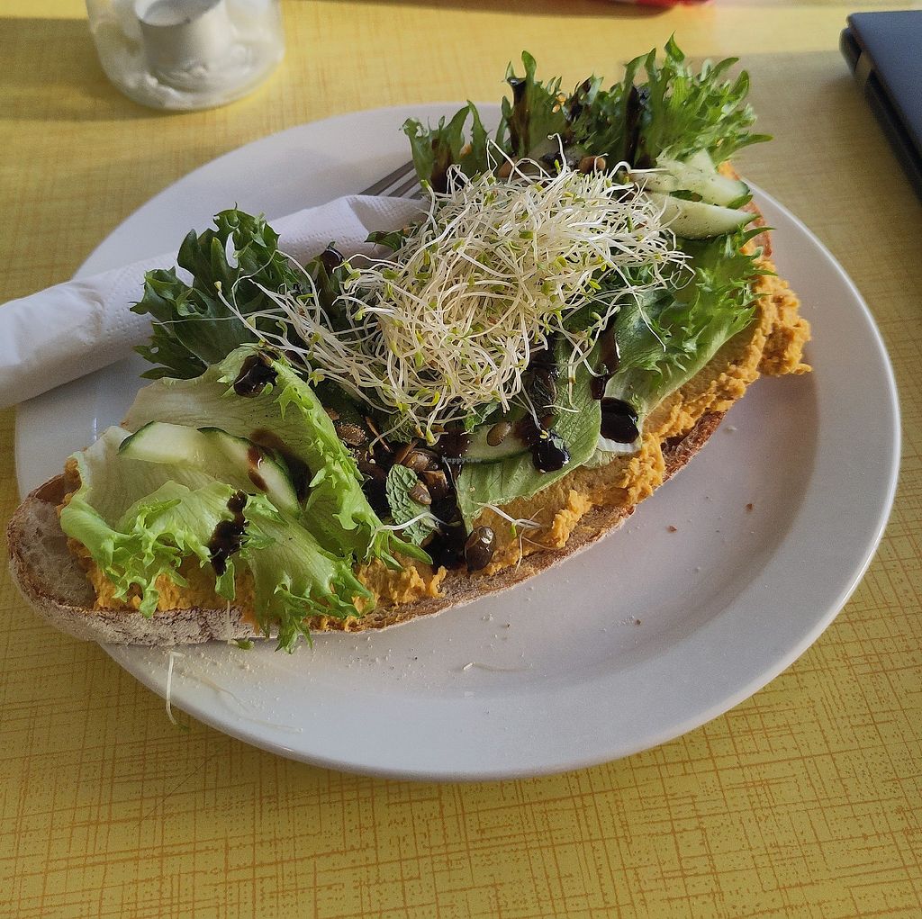 The cafè is very nice and cozy. It has Gilmore's Girls vibes reminding of Luke's cafè. They have few vegan items on the menu, including a couple of toasts with hummus. They also have oat milk for the hot drinks. I tried the kokos and cardamon latte with oat milk which was very tasty. I had the carrot hummus toast which was aboundant and good. As a dessert I tried the energy balls with chocolate and raspberries which, in my opinion, was way too sweet.