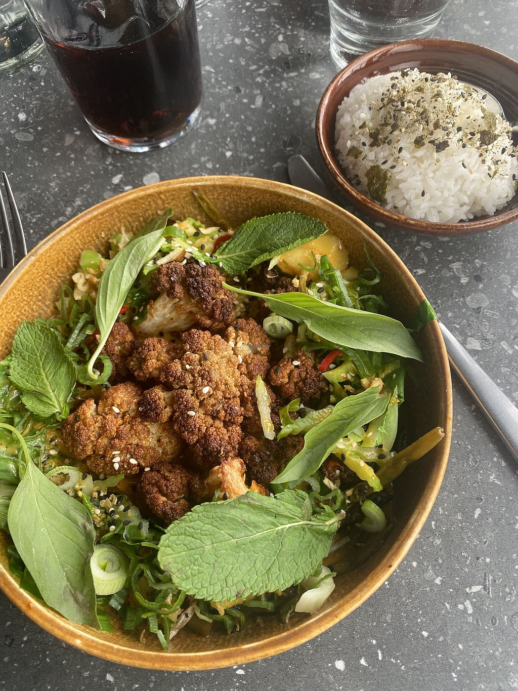 Serves meat, vegan options available. Asian restaurant serving clearly marked vegan dishes. Vegan offer includes tomatoes with tofu crème & crispy rice, cauliflower buns, kimchi, coconut rice, and fried tofu with green curry. Lunch menu always includes one vegan dish such as tofu curry or fried tofu bowl. Open Mon-Thu 11:00-22:00, Fri 11:00-00:00, Sat 13:00-00:00. Closed Sun.