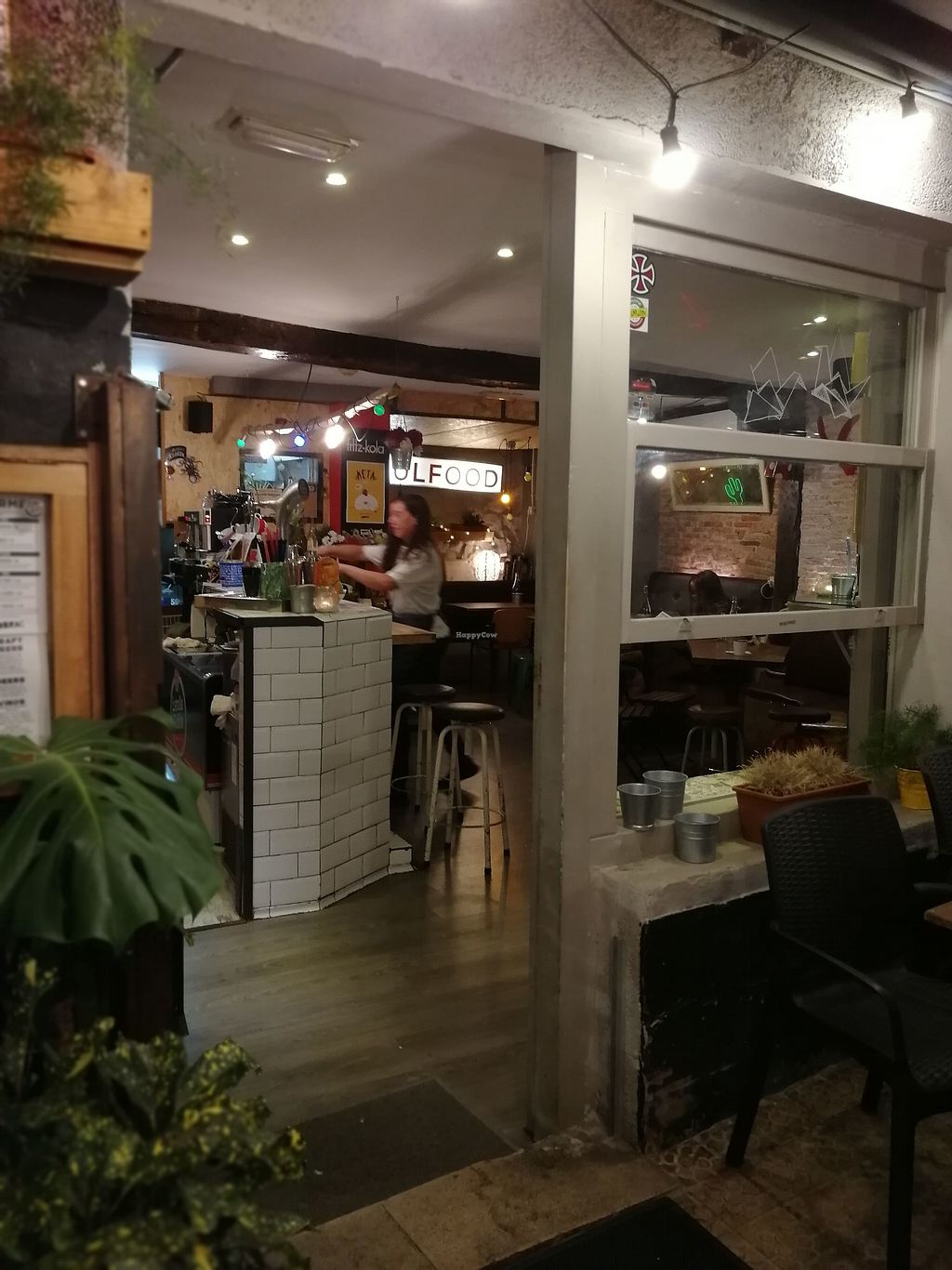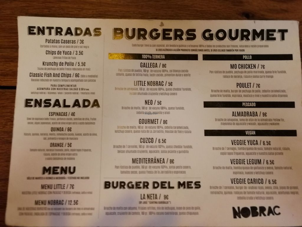 I just came to santander, and needed a bit to eat, and found this place through the Happy cow listing. I was a bit worried it was going to be a bit of a too new-age, weird burger place, but was pleased when I came there with how cool it was. The area around nobrak has a lot of rock bars and cool places. Nobrak itself was crowded when I came it and it took few moments to be seated and to order, but once I did, food was delivered quickly. My spanish is rusty, but I ordered in spanish and read the spanish menu, so I can't comment on the english. The waitess was friendly, and managed to stay calm despite being slammed. The food had a bit of oil, the yuca burger seemed to soak up oil, but they do call themselves "nobrak soulfood" not "nobrak diet bar" so the food lived up to the name, which I respect and applaud - living up to a name. Frankly even though I am eating really light these days, and am dieting very hard, you have to admit that everyone, including us vegans needs some proper soulfood now and then. They have a nice selections of drinks, wines and beers. It seems they also take reservations, which if you are more than one person, you may need. The place isn't entirely vegan, but they seemed to manage well with understanding vegan. The spicy sauce is properly spicy, which they warned me about, so if you are not used to chilis don't order it - I'm a chili eater and was pleasantly surprised I could actually taste it was spicy-the burger sauce that is. The music they played was cool reggae. I would definitely recommend. Portions were very big, I struggled to finish. Fries are not very worth it, they may consider double drying them to get them crispier