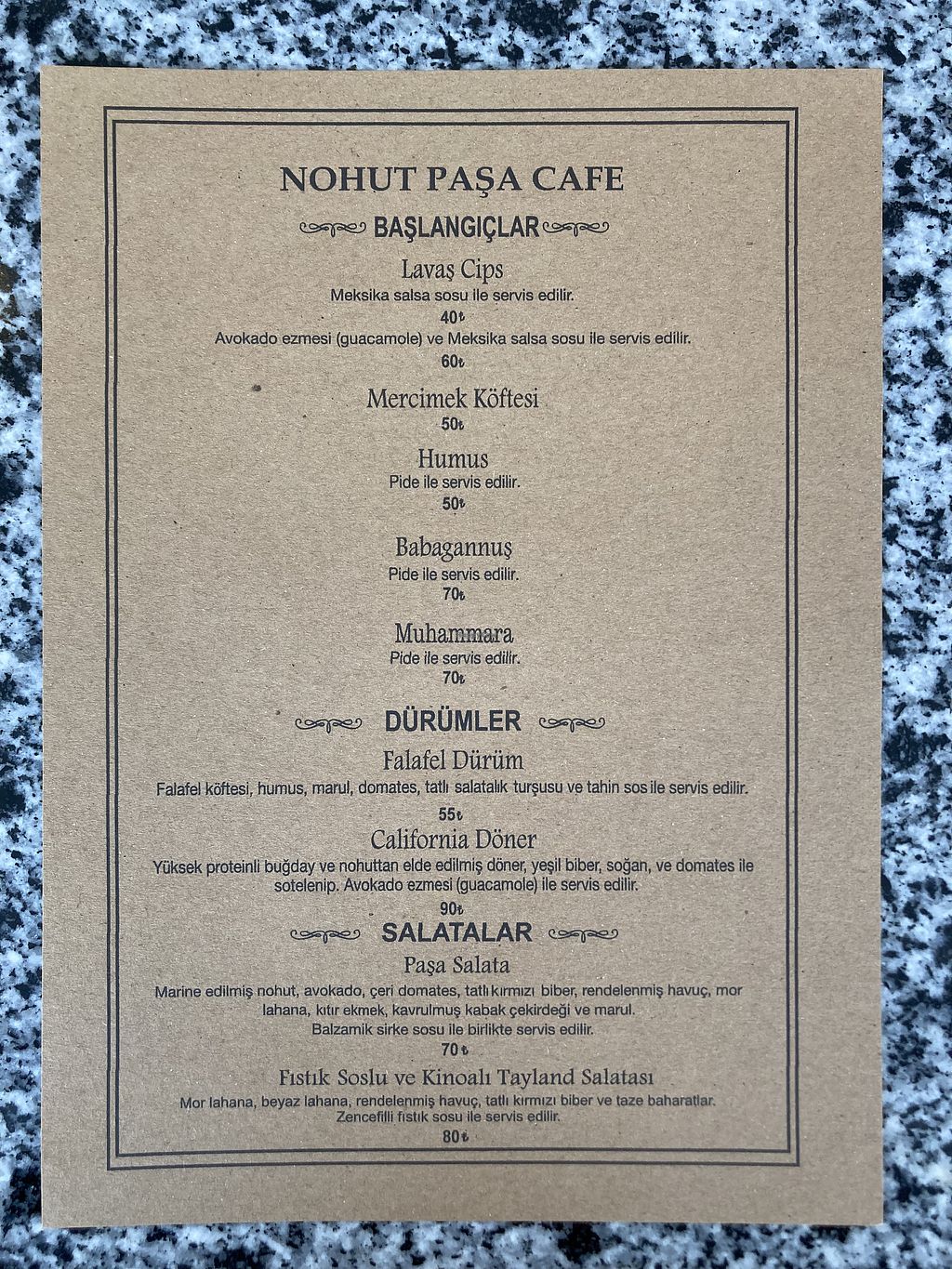 Yeni Türkçe Menü 2/3 - Salatalar, Tabaklar, Tatlılar