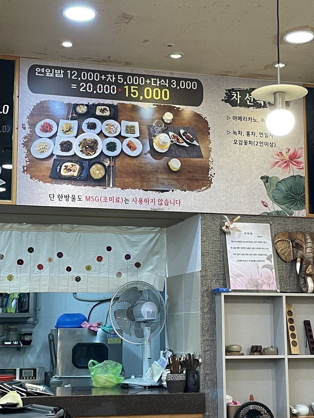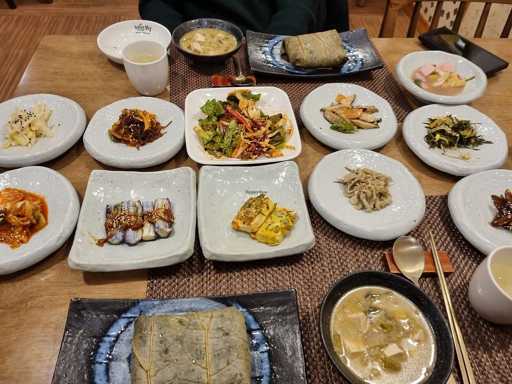 Korean restaurant serving temple food. Offers a few vegan-friendly dishes including lotus leaf wrapped rice, bean soup and sides. Reported October 2025 to be vegetarian. Open Tue-Sun 11:00am-7:00pm. Closed Mon. Closes early sometimes.