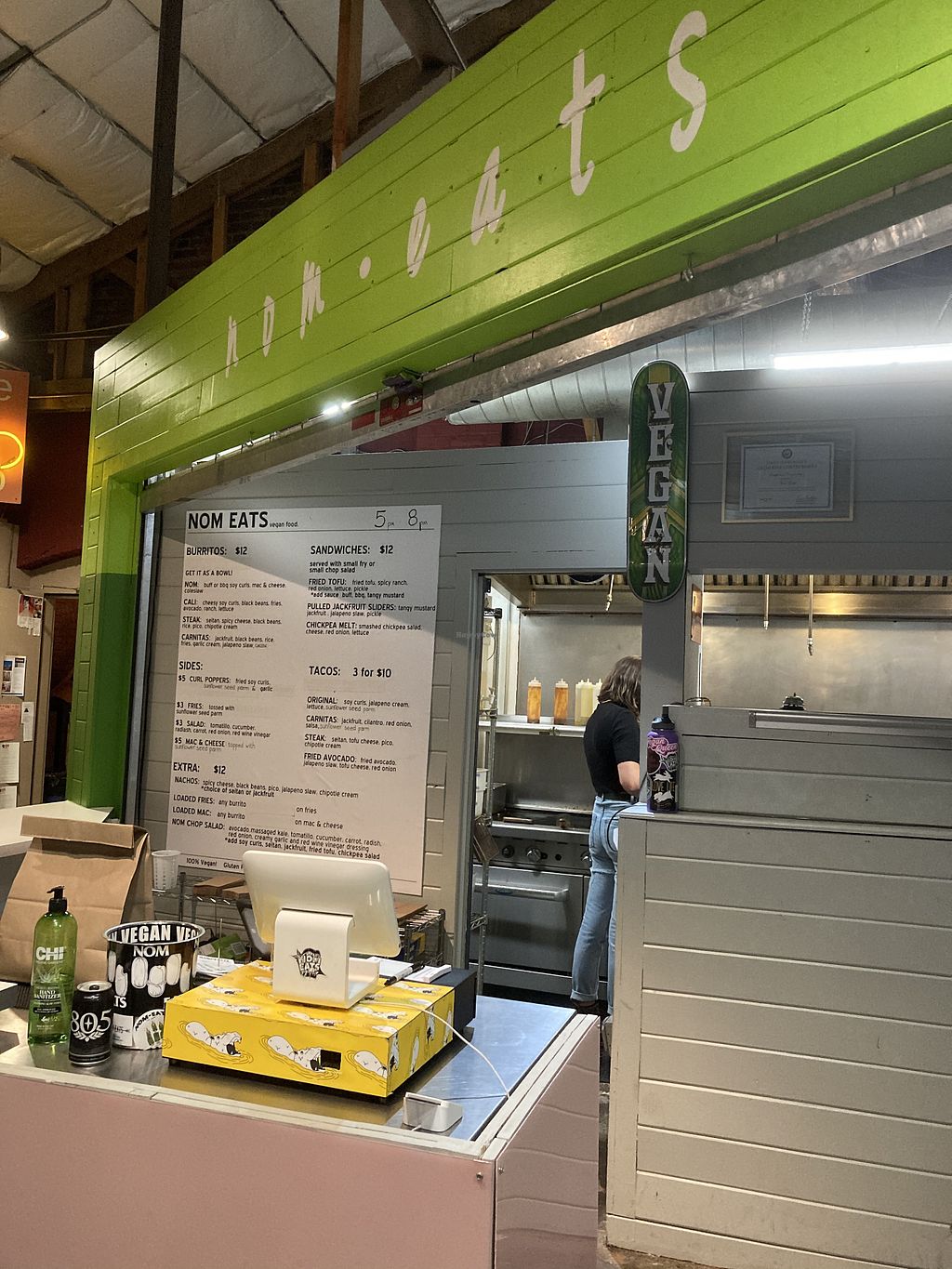 Nom Eats is an awesome establishment! I think it's aptly described as "vegan stoner food". Definitely hits the spot when you need some jumbo burritos, salty soy curls, and delicious mock meats!