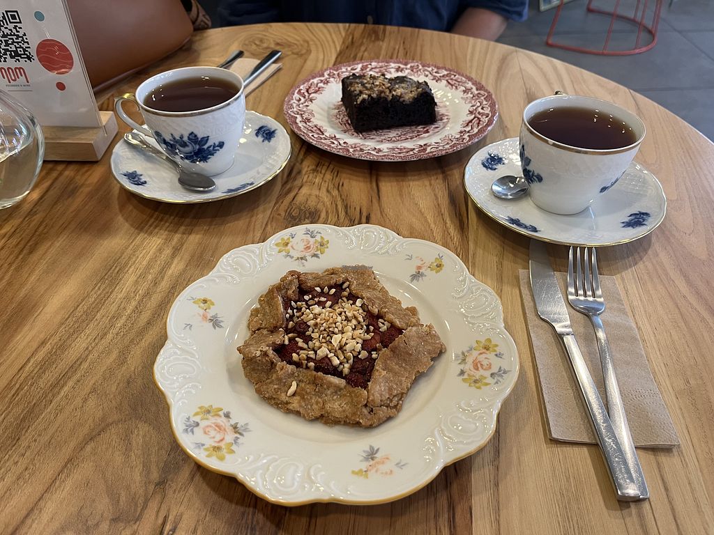There were three types of vegan desserts, but the menu changes daily. I tried two of them. The tart was delicious, I loved it. The brownie was ok. The atmosphere was very lovely.