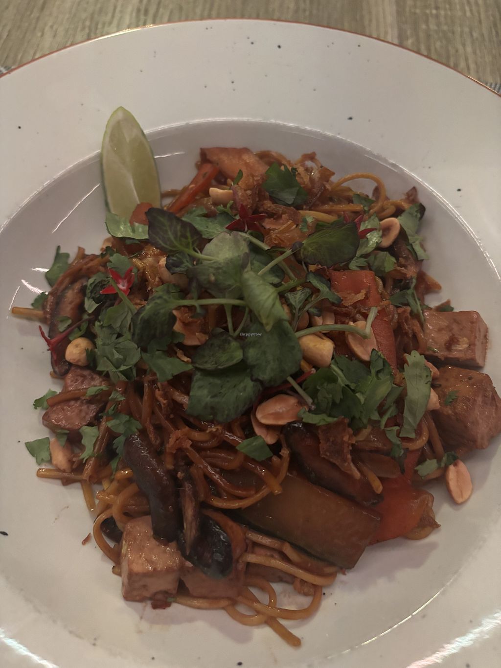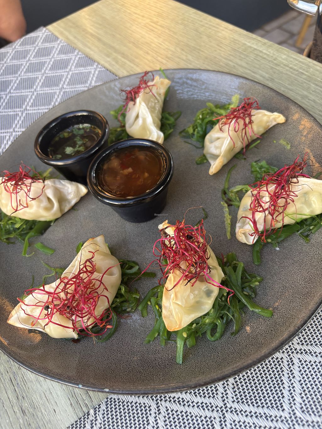 Loved the marina side tables, beautiful view of the bay. Nice vibe, staff really helpful and friendly. Thete is a vegan section on menu but easy to spot other items in the starters and extras bit. Had vege gyozas served on a bed of seaweed followed by a beautifully presented aubergine salad. Super tasty noodle and tofu dish as well - get all the lime on it, really elevates the flavour! Interesting food, beautifully presented, lovely location. Winner 🏆