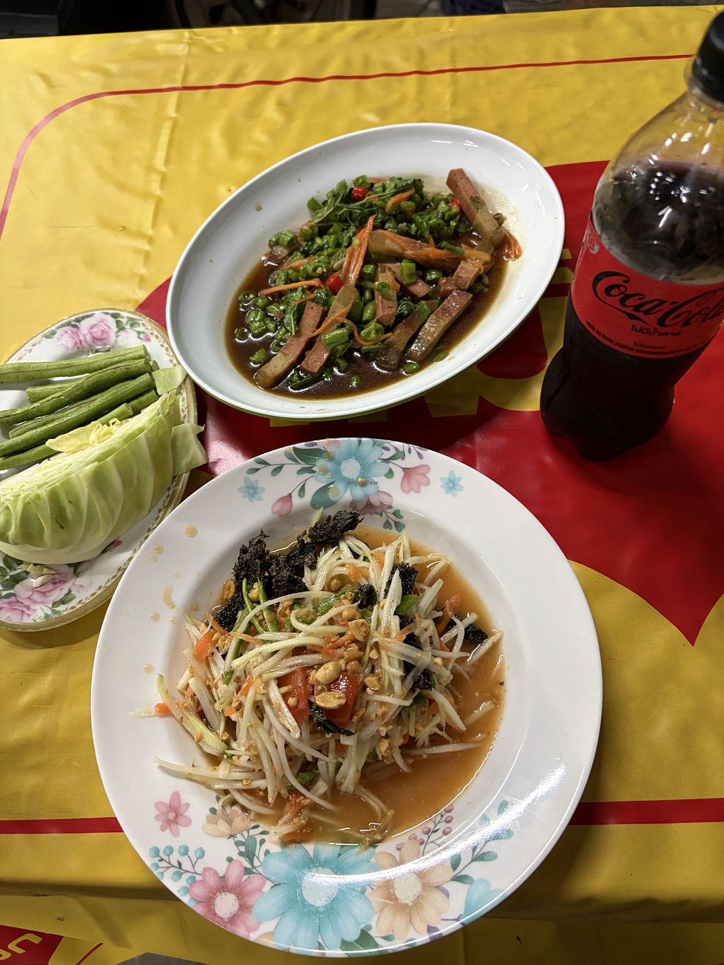 We ate there 3 times and every time tried different things. My favourite is pad Thai and chicken with basil, or duck with basil. But the spicy fried rice was delicious and same goes for dumplings and pancakes. The curry was very good as well. I was not a big fan of the streaky pork with ginger, but I guess some might like it. You also get a small soup/broth as starter for free.