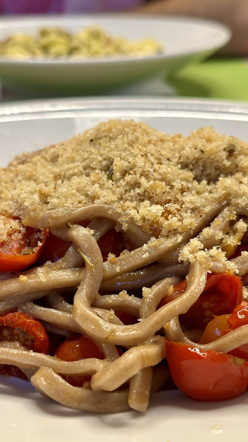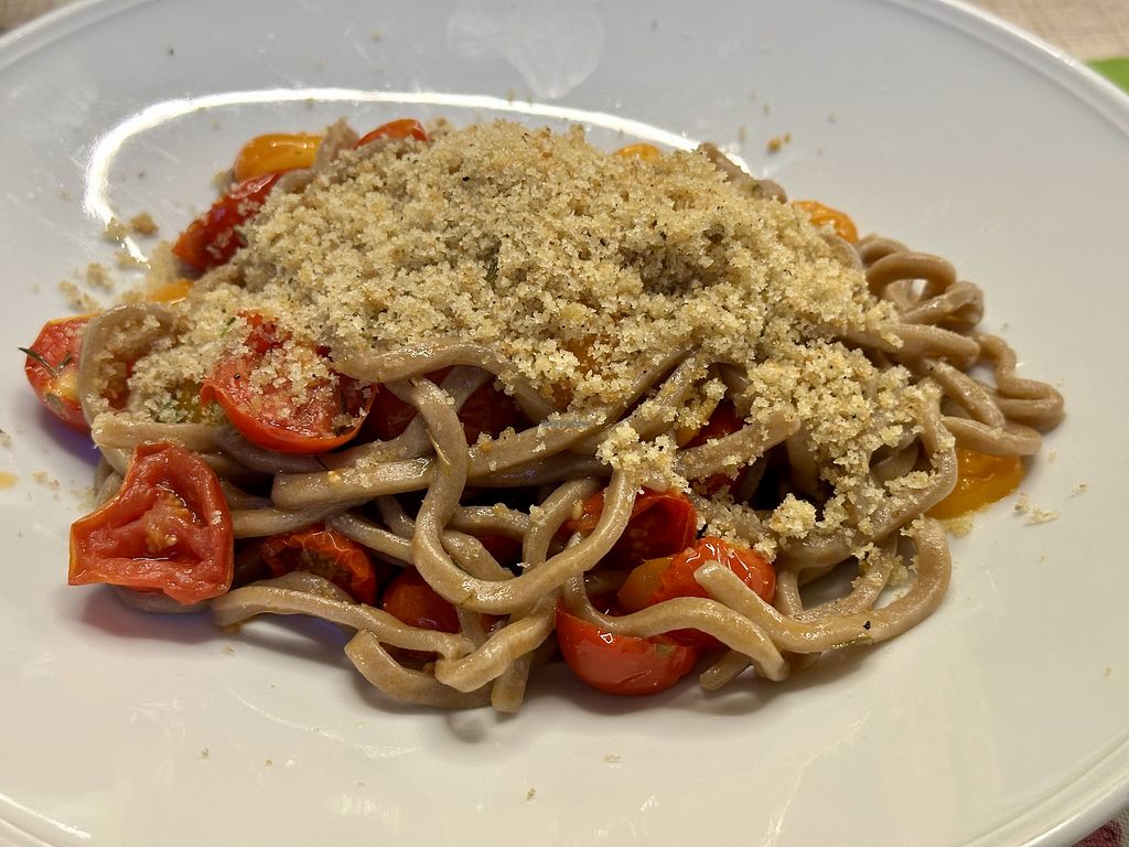 Pincinelle with confit tomatoes and bread crumble