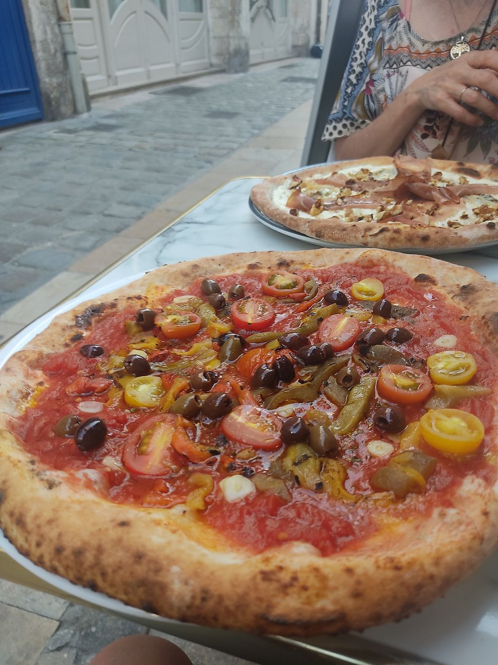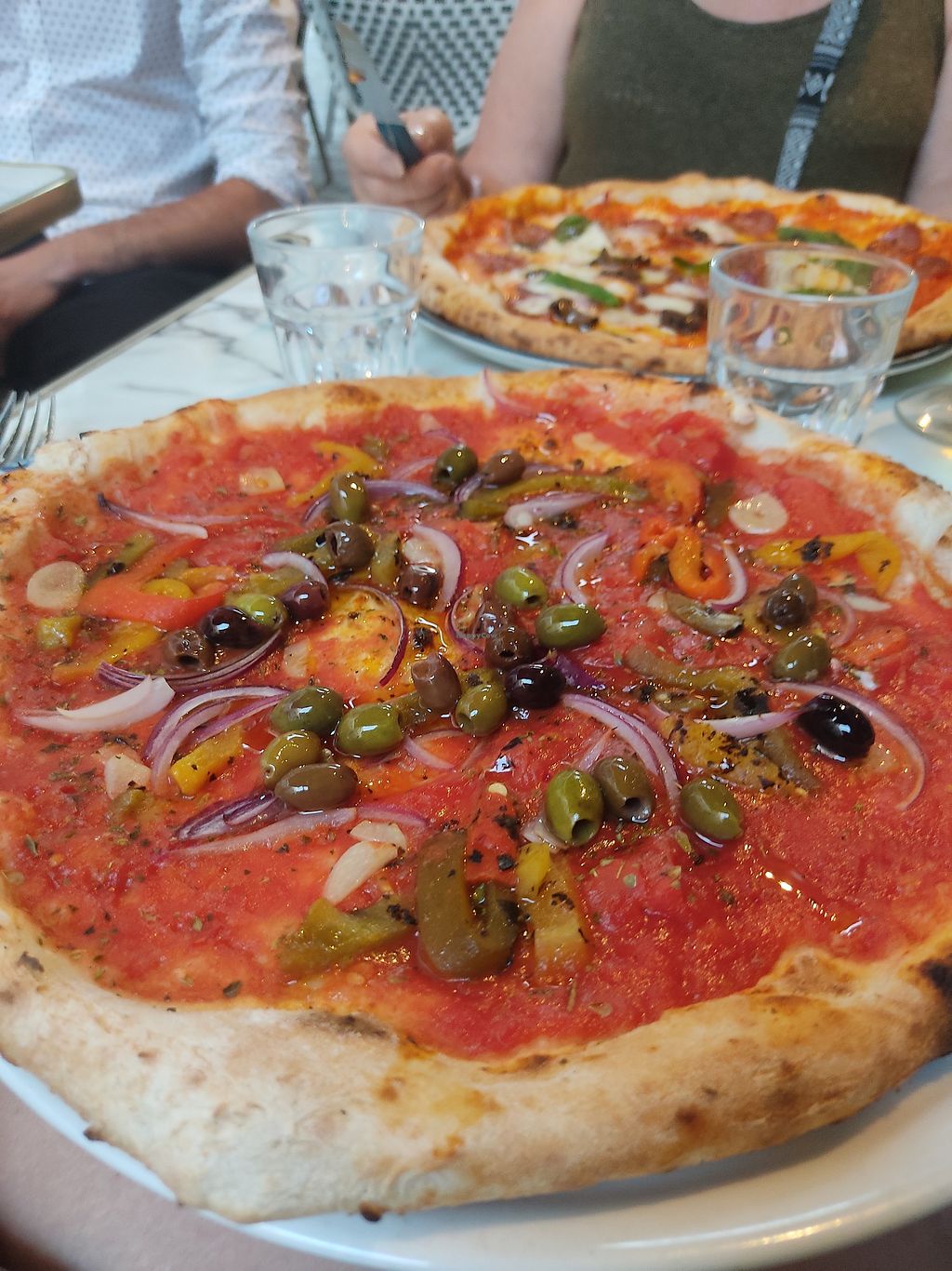 Pizza authentique, quelques pizze végétariennes à la carte. Pizza végétalienne possible en prenant la base tomate et en rajoutant les ingrédients proposés sur la carte. On s'est régalé. Les pizze embaument toutes la rue 😅🤌🏻