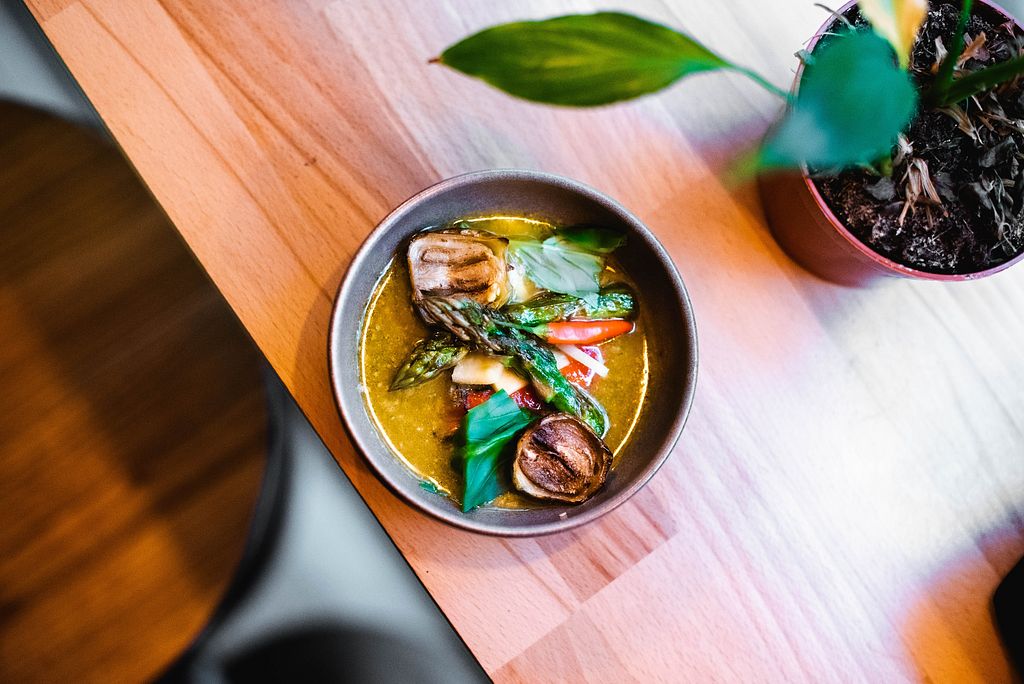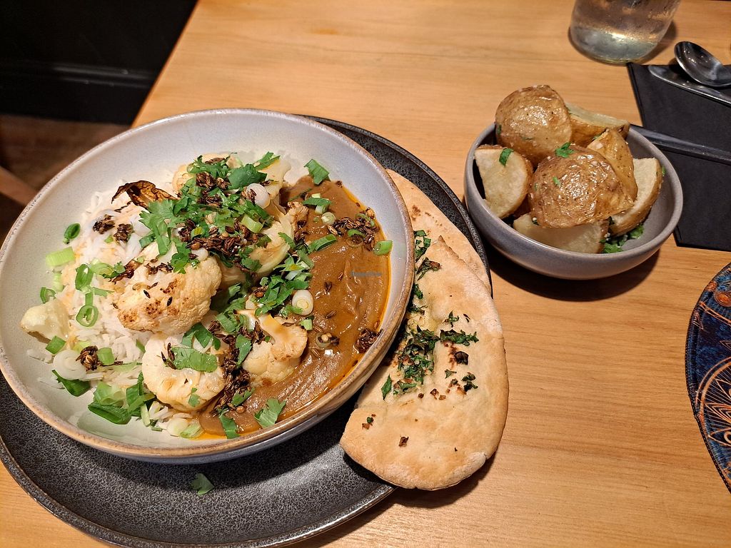 Cauliflower katsu curry with fried parsley potatoes