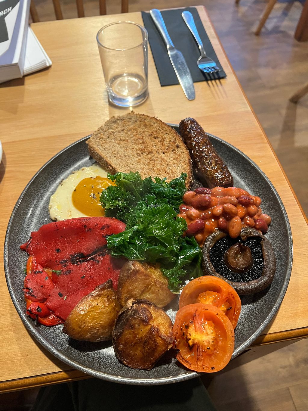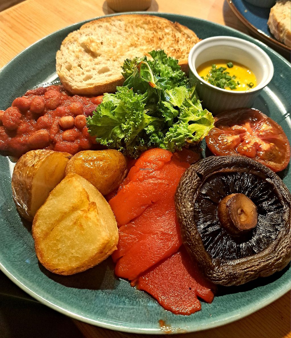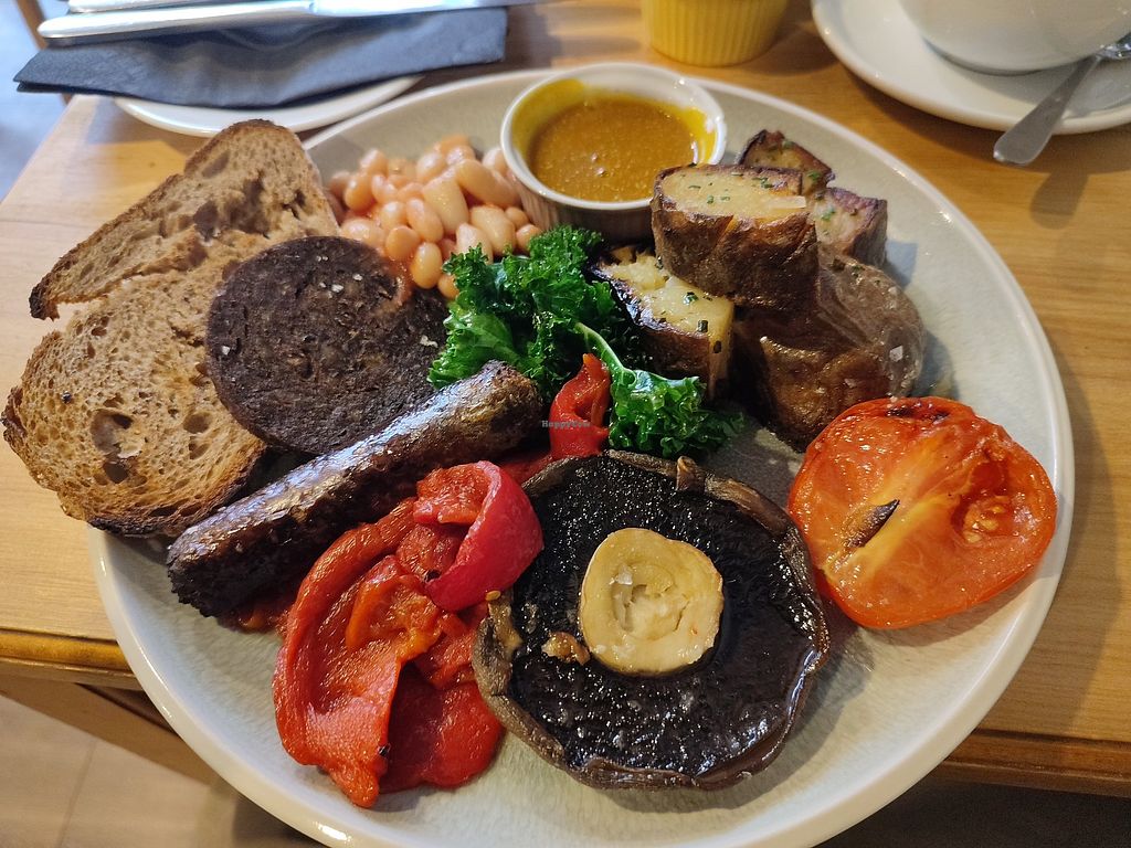 Today breakfast complete with vegan fried egg and vegan black pudding!…