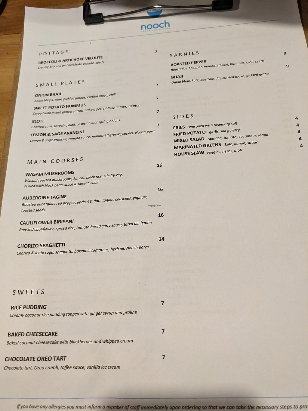 Menu, changes frequently
