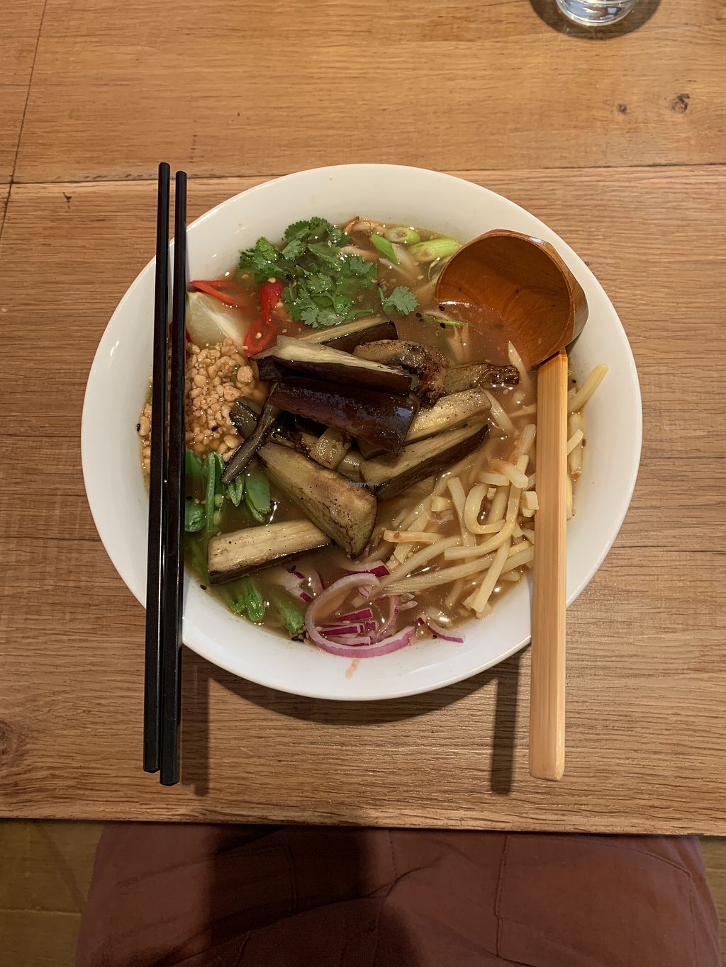 Sukiyaki ramen with aubergine (eggplant)