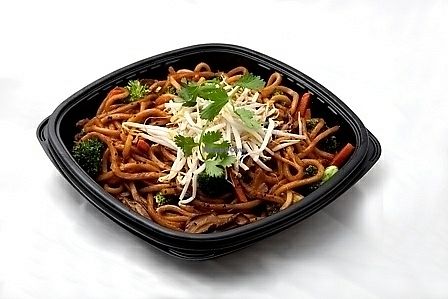 Serves meat, vegan options available. Quick-service noodle restaurant chain where you could customize your bowl to be meatless and dairy-free, and add tofu or get zoodles (zucchini noodles). Menu draws from world flavors. Sample options like Indonesian peanut saute, Japanese pan noodles, penne rosa (minus cream and cheese), Chinese chop salad (minus wontons), and whole grain tuscan fresca (minus cheese). Open Mon-Sun 10:30am-10:00pm.