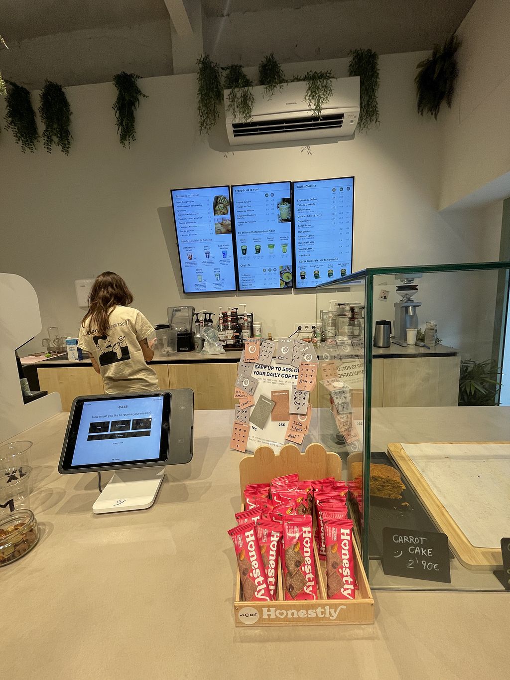 Cozy coffe specialty place in Eixample Excellent vegan lattes and frappes. They also have vegan shakes.