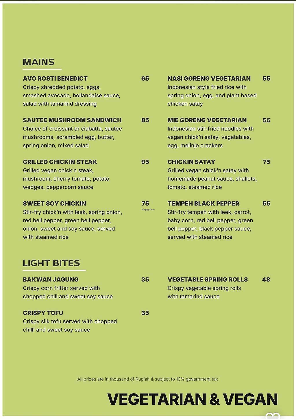 Vegan and vegetarian menu. They’re happy to veganise vegetarian dishes…
