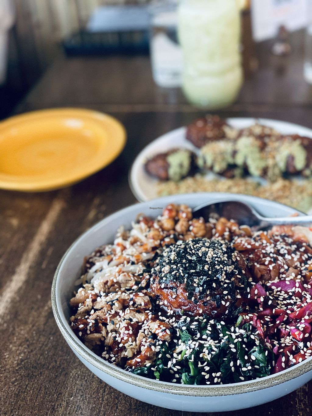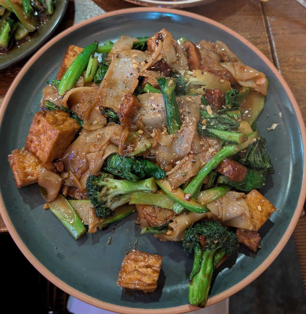 Butter Soy Curl Taco (left) and Pad Kra Pao-style Tofu Taco (right)